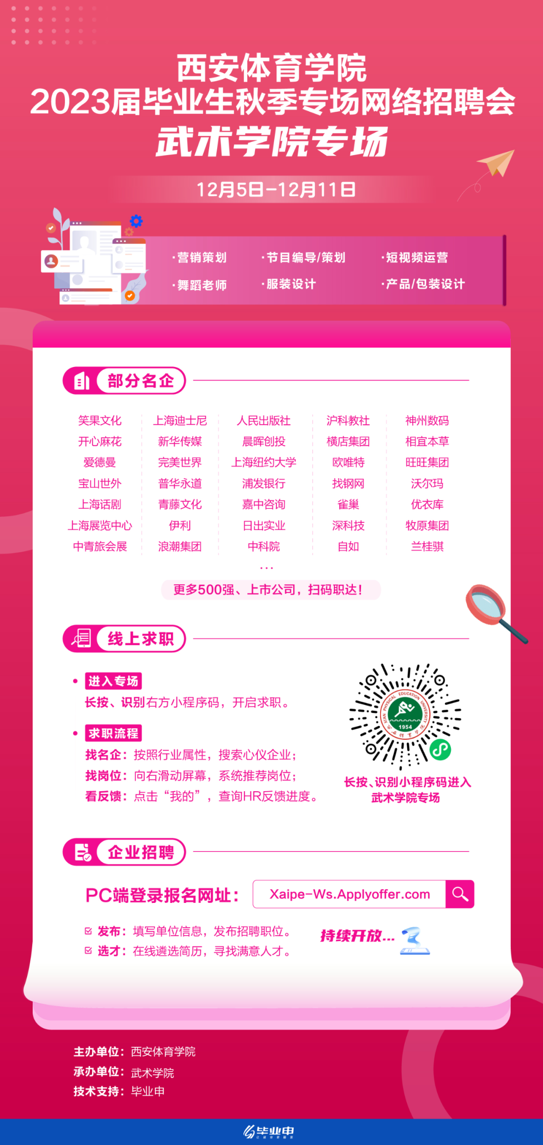 武术学院专场 | 今年会官方网站2023届毕业生秋季专场招聘会