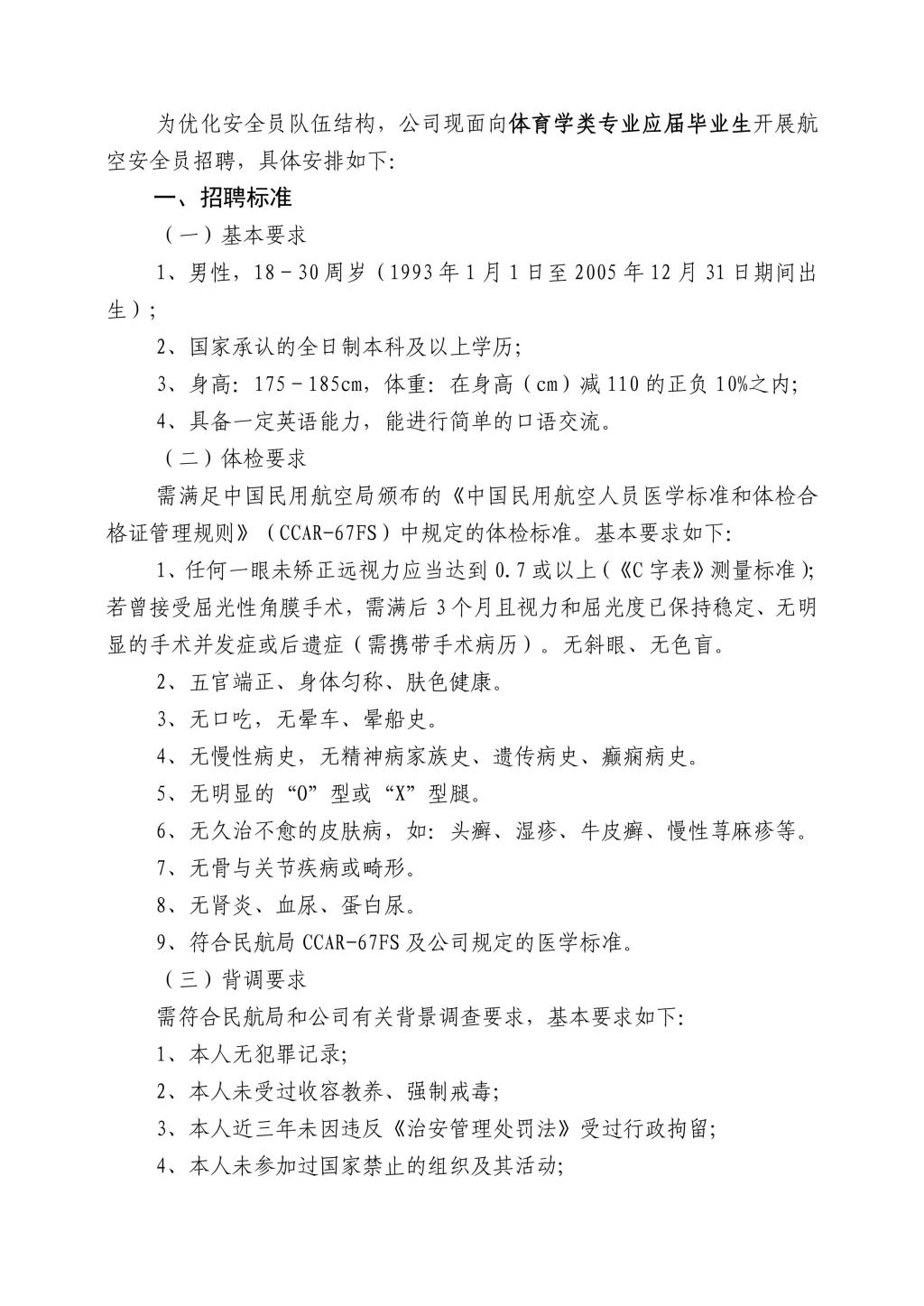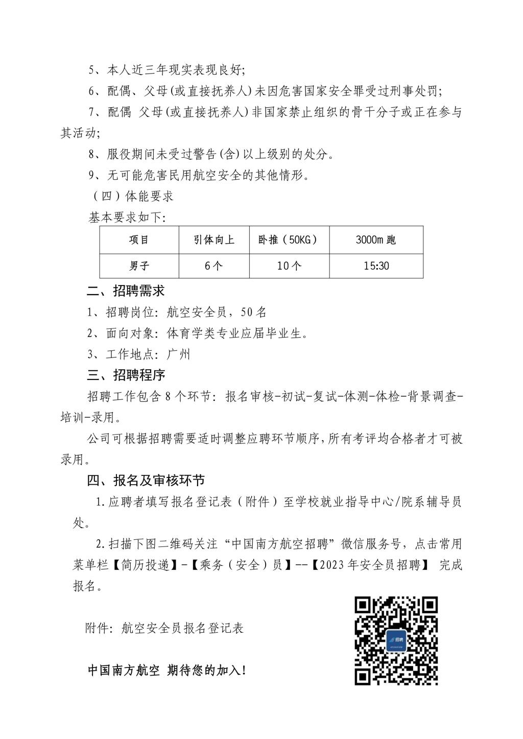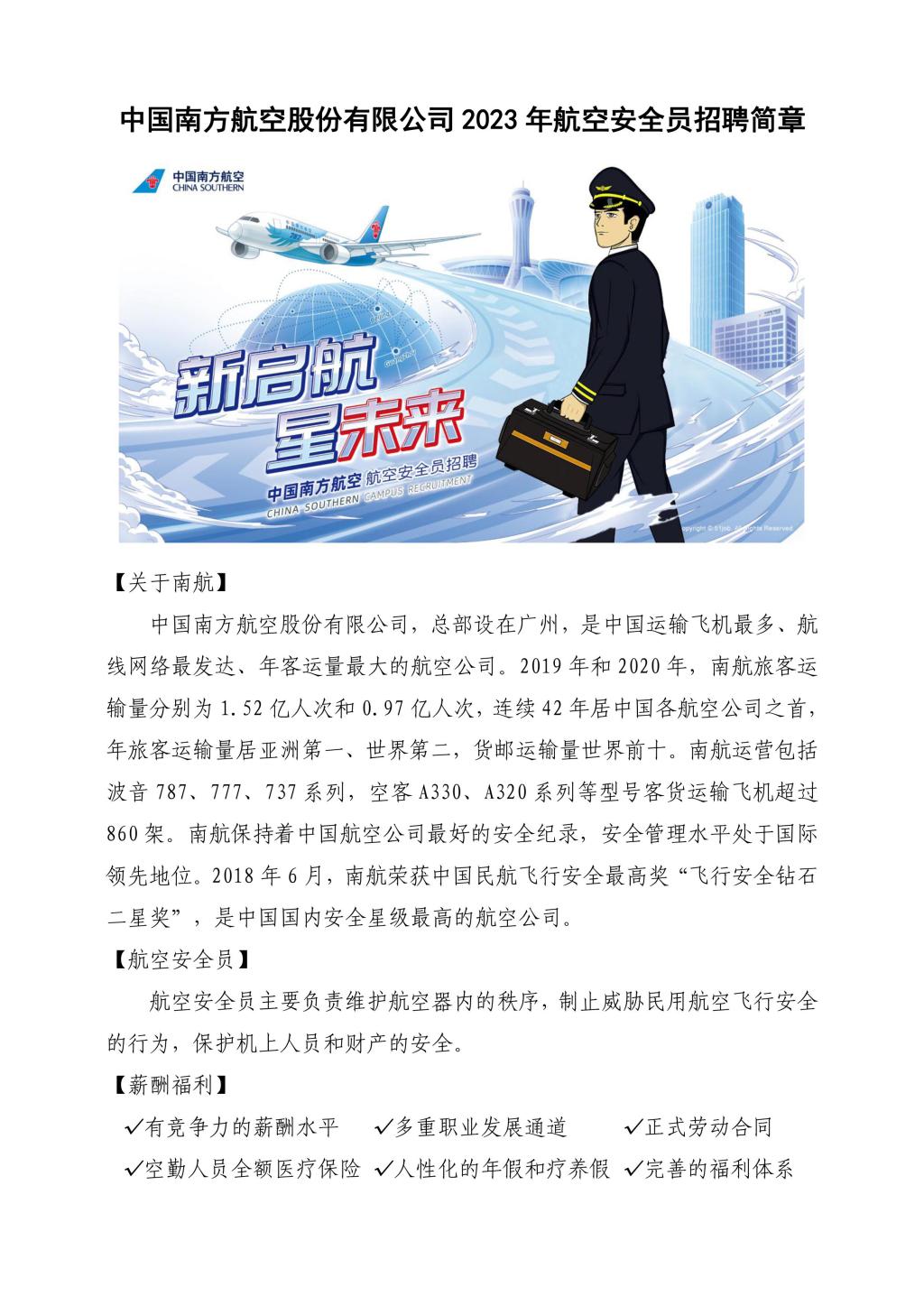 中国南方航空股份有限公司2023年航空安全员招聘简章