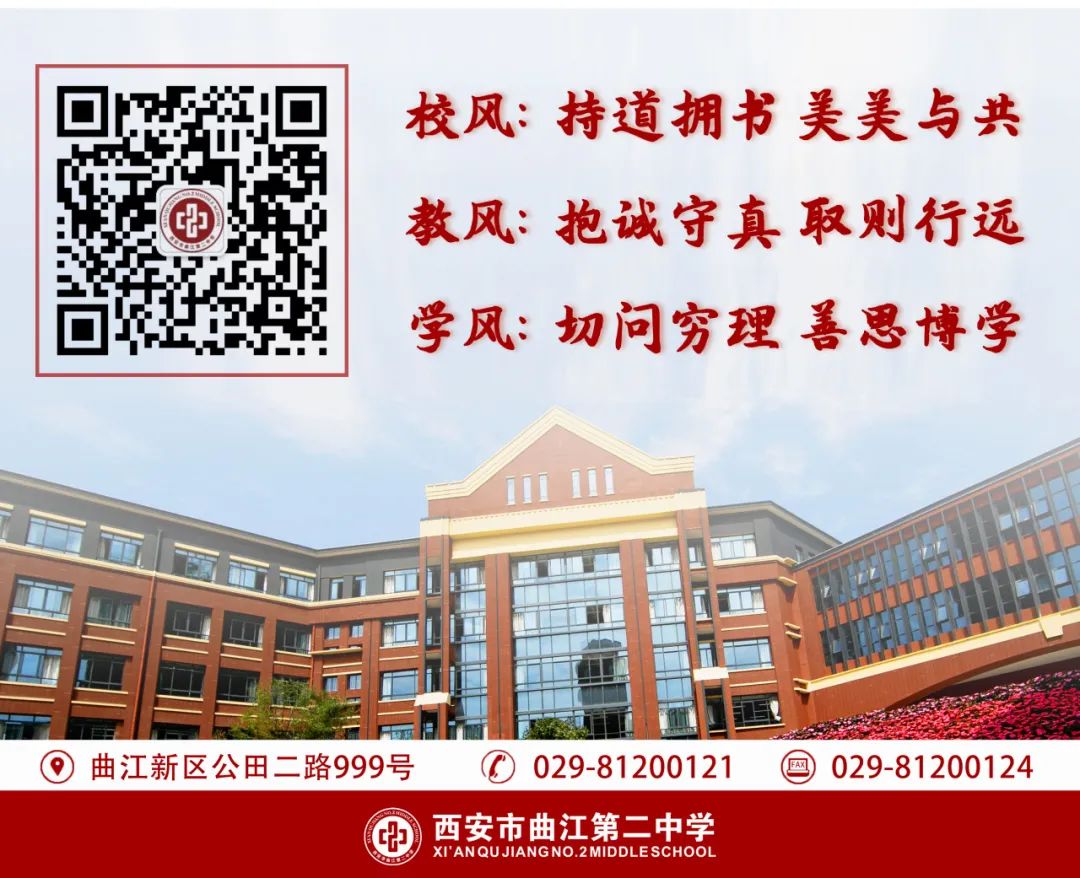 西安市曲江第二中学是西安曲江新区管理委员会高起点、高标准、高质量举办的一所公办完全中学,于2019年9月正式建成开学,2021年晋升为陕西省标准化高中。学校位于具有人文魅力与生态底蕴的曲江新区,校园占地面积60亩,建筑面积91000平方米。学校建筑设计英伦风格,校园环境宜人,布局合理,现代化教育教学设施设备一应俱全。
