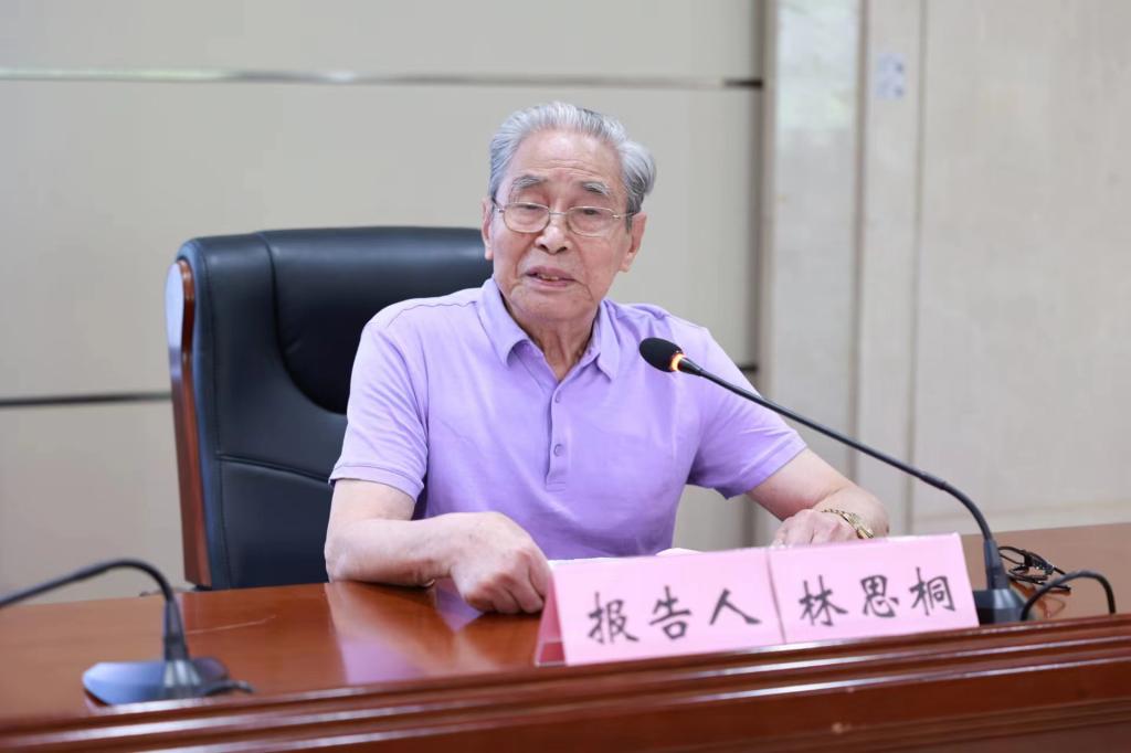 为深入学习贯彻习近平总书记关于教育的重要论述、大力弘扬践行教育家精神,持续加强我校师德师风建设,展现我校教师教书育人的精神风貌和爱岗敬业的崇高师德。2024年6月19日,在学校第二行政楼六楼报告厅,我处退休教授林思桐老师做“在教师岗位上,我曾努力过”的专题报告,学校各部门领导、全体辅导员、教师及学生代表聆听了报告会。报告会由校长李富生主持。