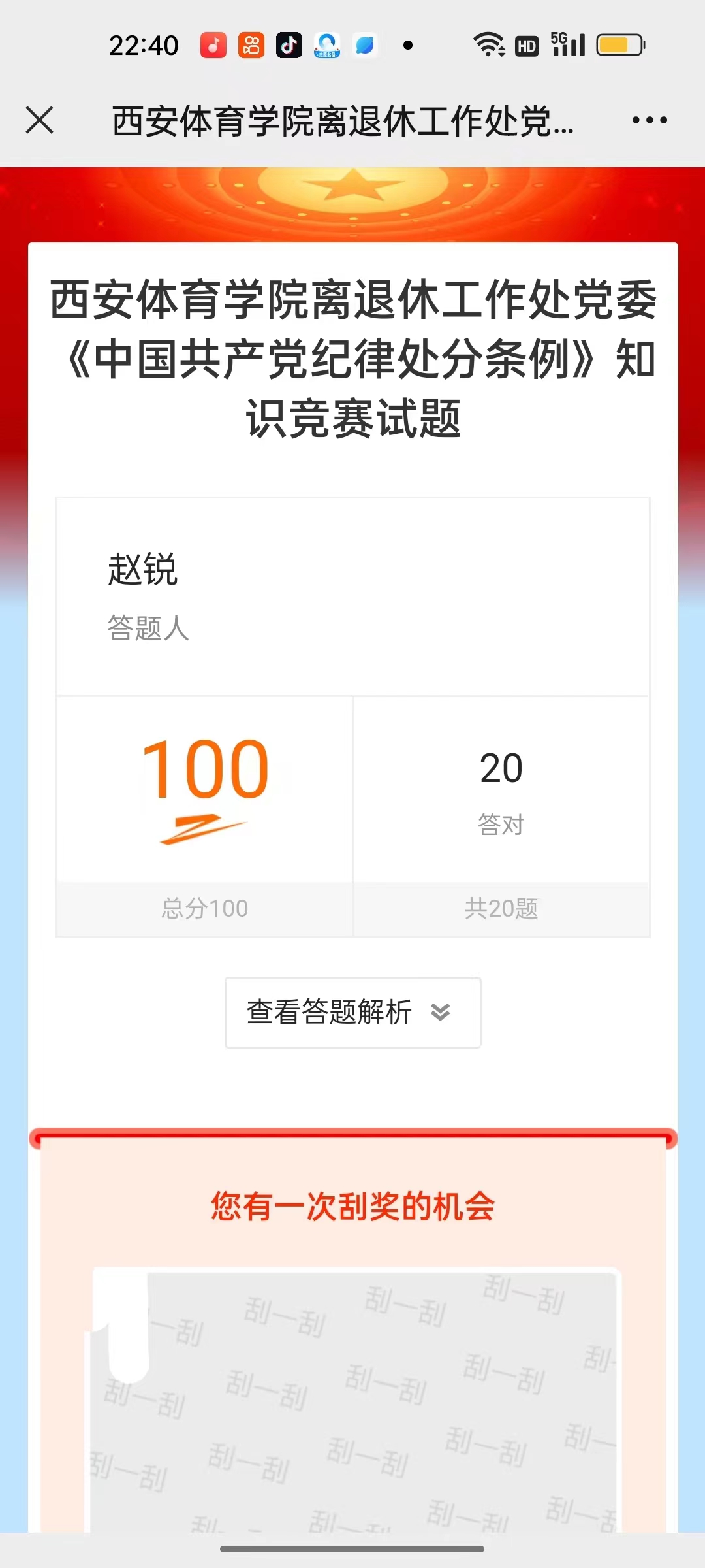 为深入开展党纪学习教育,进一步引导全体党员干部学纪、知纪、明纪、守纪,根据《关于印发<在全校开展党纪学习教育的实施方案>的通知》精神,离退休党委在深入学习新修订的《中国共产党纪律处分条例》基础上,组织离退休党员开展了《中国共产党纪律处分条例》知识竞赛活动。