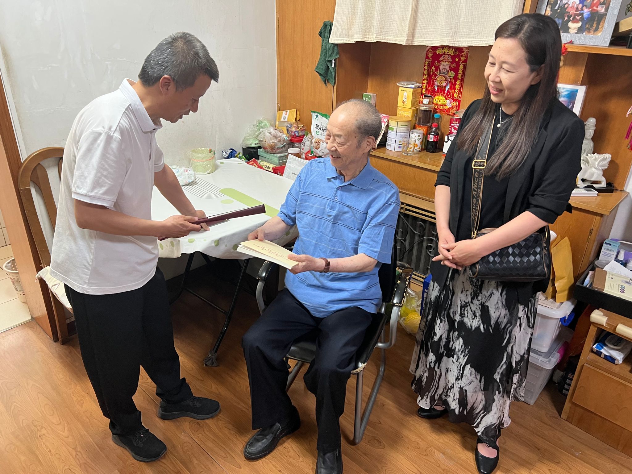 活动中,离退休党委为老党员精心准备了《习近平关于加强党的作风建设论述摘编》等学习书籍以及印有中国居民平衡膳食的折扇,深入老党员家中与他们促膝谈心,悉心了解他们的身体状况和生活需要,送上组织的关心和问候。希望他们一如既往关心党的事业,保重身体,积极发挥余热,为我校高质量发展献言献策。