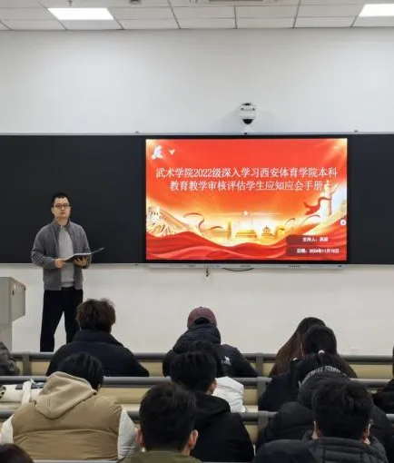 随着本科教育教学审核评估工作的开始,为确保评估工作的顺利进行,武术学院学工办积极响应学校号召,精心策划并高效组织了覆盖各年级的学习活动,旨在通过深入学习《本科教育教学审核评估学生应知应会》手册,增强学生的迎评意识,激发学生的责任感与主动性,以主人翁的姿态迎接评估工作。共同为学校的评估工作贡献力量。