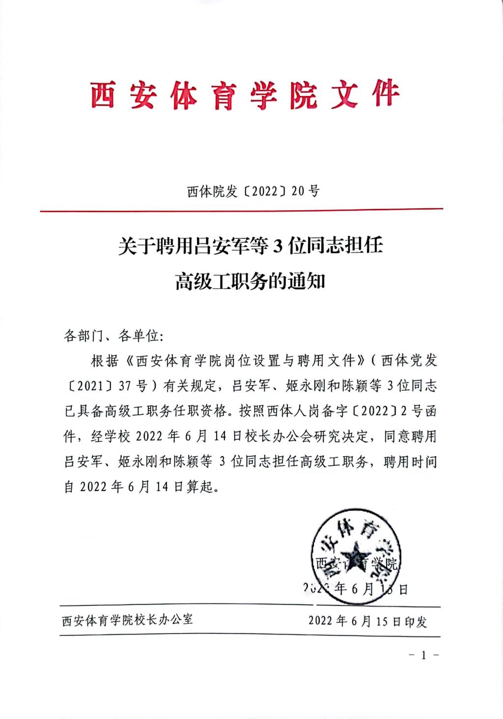 关于聘用吕安军等3位同志担任高级工职务的通知