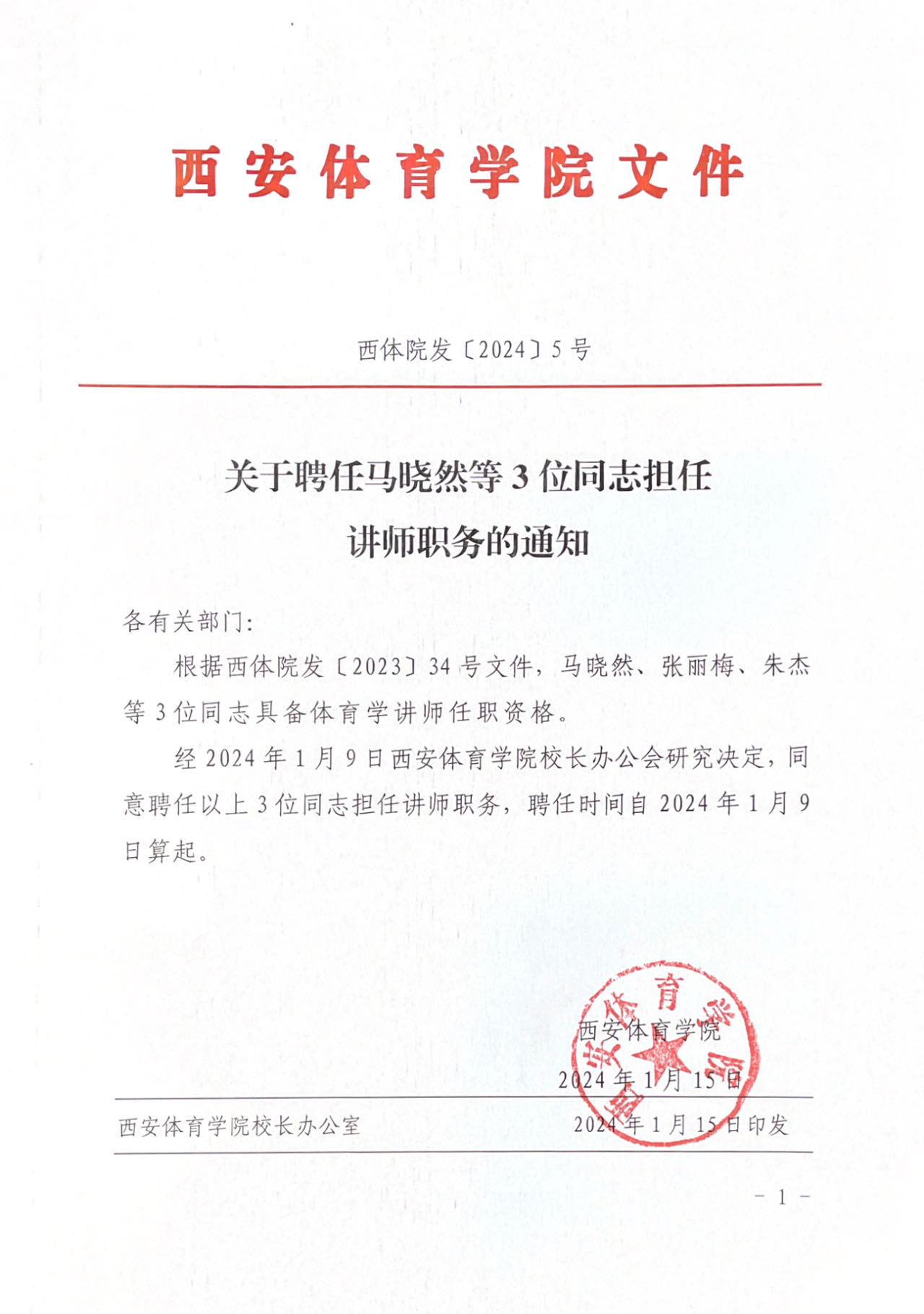 关于聘任马晓然等3位同志担任讲师职务的通知