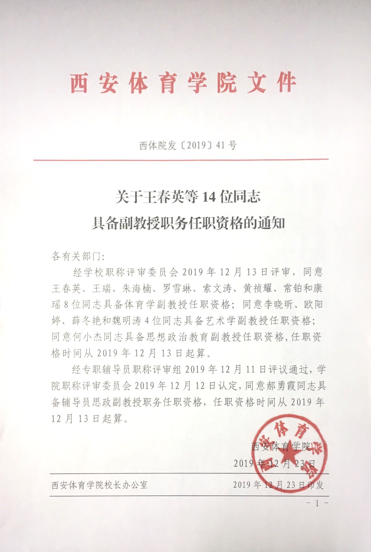 关于王春英等14位同志具备副教授职务任职资格的通知