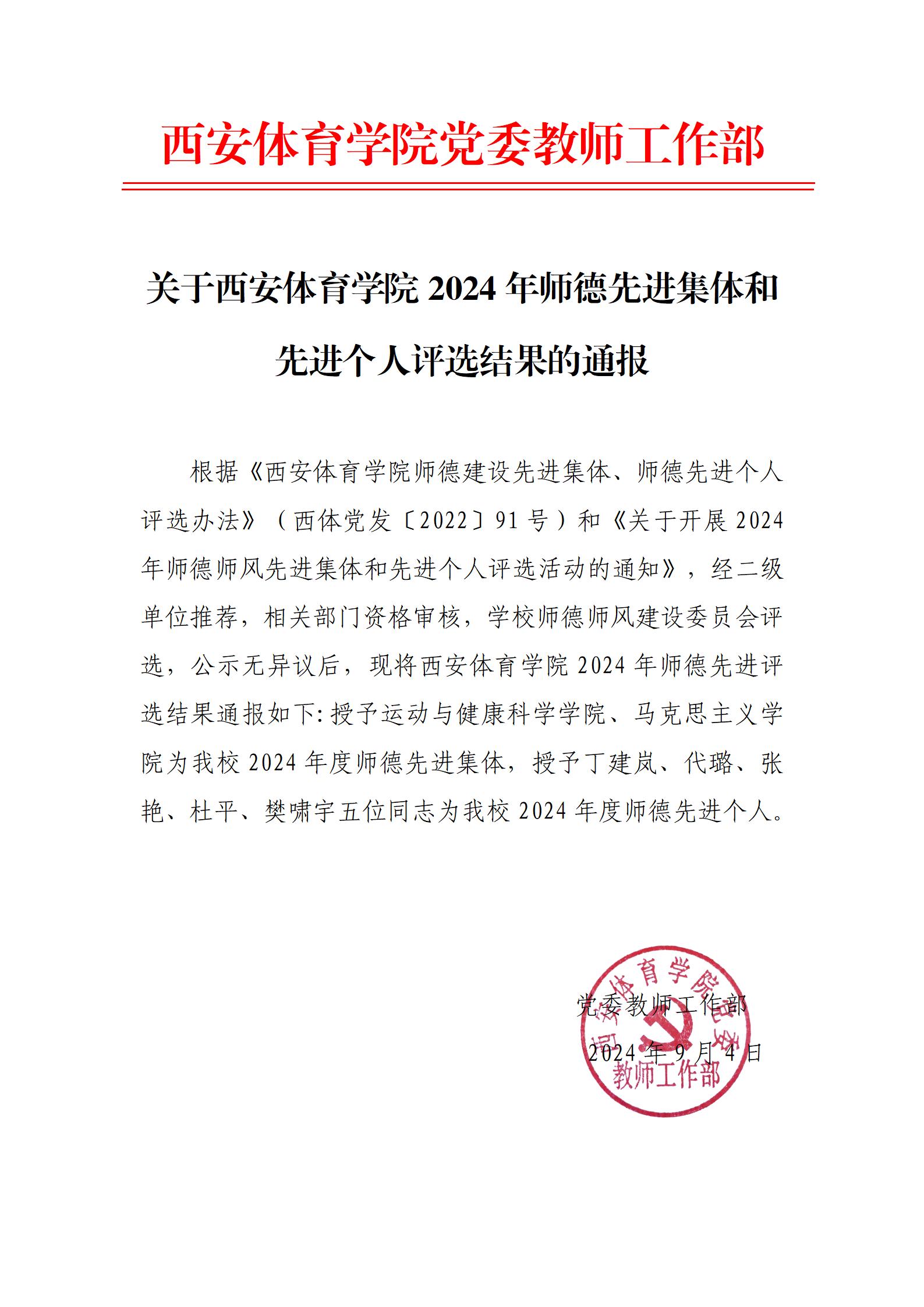 关于今年会官方网站2024年师德先进集体和先进个人评选结果的通报