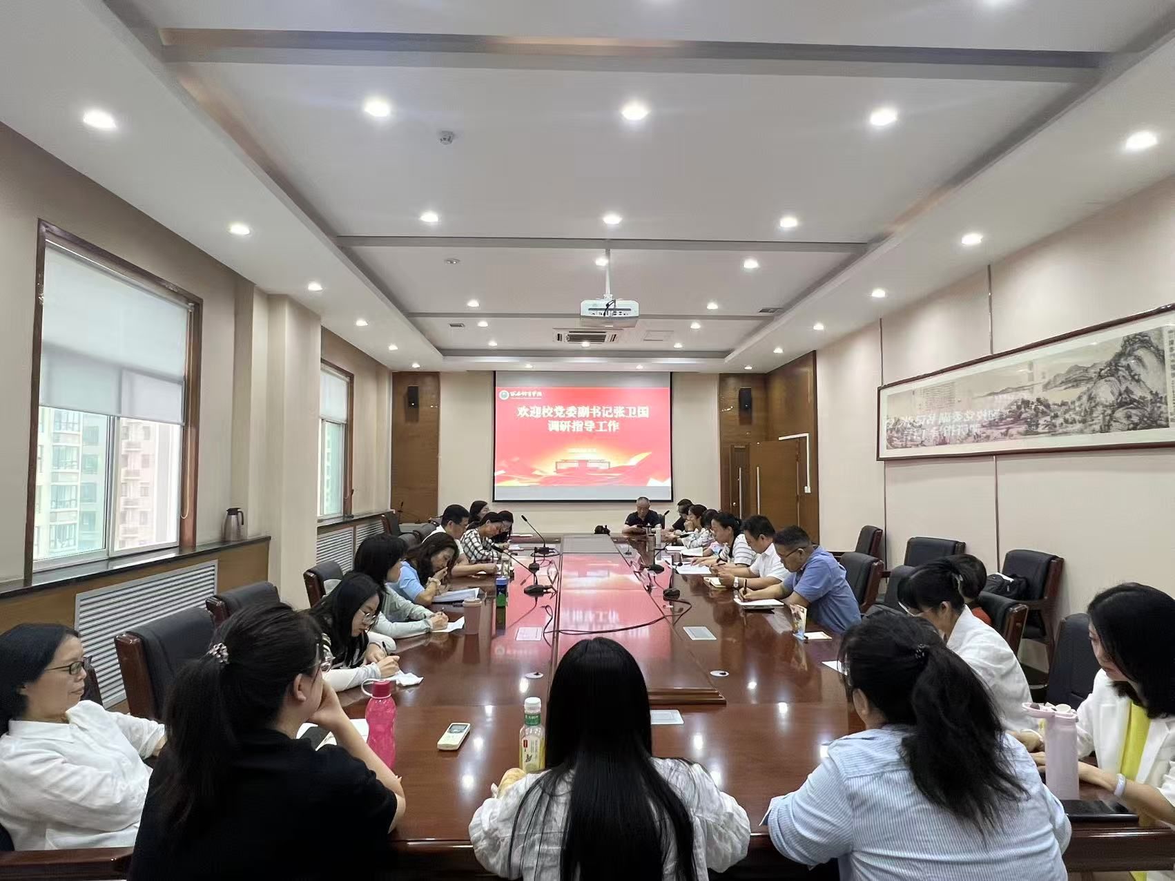 张卫国积极回应老师们提出的问题和建议,并在总结讲话中肯定了马克思主义学院近年来在教育教学、学科发展、科学研究、人才培养等方面取得的成绩,就下一阶段如何做好马克思主义学院的教学、科研、师资队伍建设和人才培养等工作提出了对策及建议。他指出,马克思主义学院建设关系学校人才培养,关系学校立德树人目标的实现,必须高度重视。希望学院在前期工作基础上,坚持守正创新,力争实现高质量发展。一是“马院姓马,在马言马”,马克思主义学院作为大思政格局构建的排头兵,肩负着学习研究阐释马克思主义理论、培育和弘扬社会主义核心价值观、培养中国特色社会主义建设者和接班人的重要使命;二是坚定信心,对标一流,打造人才队伍重要阵地,要聚焦国家战略和地方经济社会发展需求,有针对、有组织、有情怀、有担当开展高质量科学研究和高水平教育教学;三是要积极探索和创新现代化教学模式,积极挖掘思政元素,汇聚多方合力、整合资源,突出课程建设,打通思政课程和课程思政双向融合;四是持续加强师资队伍建设,加强高层次、高水平人才引育,让人才队伍更好地服务于学院建设。学校将一如既往高度重视马克思主义学院的建设与发展,持续优化思政课教师队伍建设,提升学院教育教学条件等方面给予持续关注和支持,高标准、高质量建设好马克思主义学院。