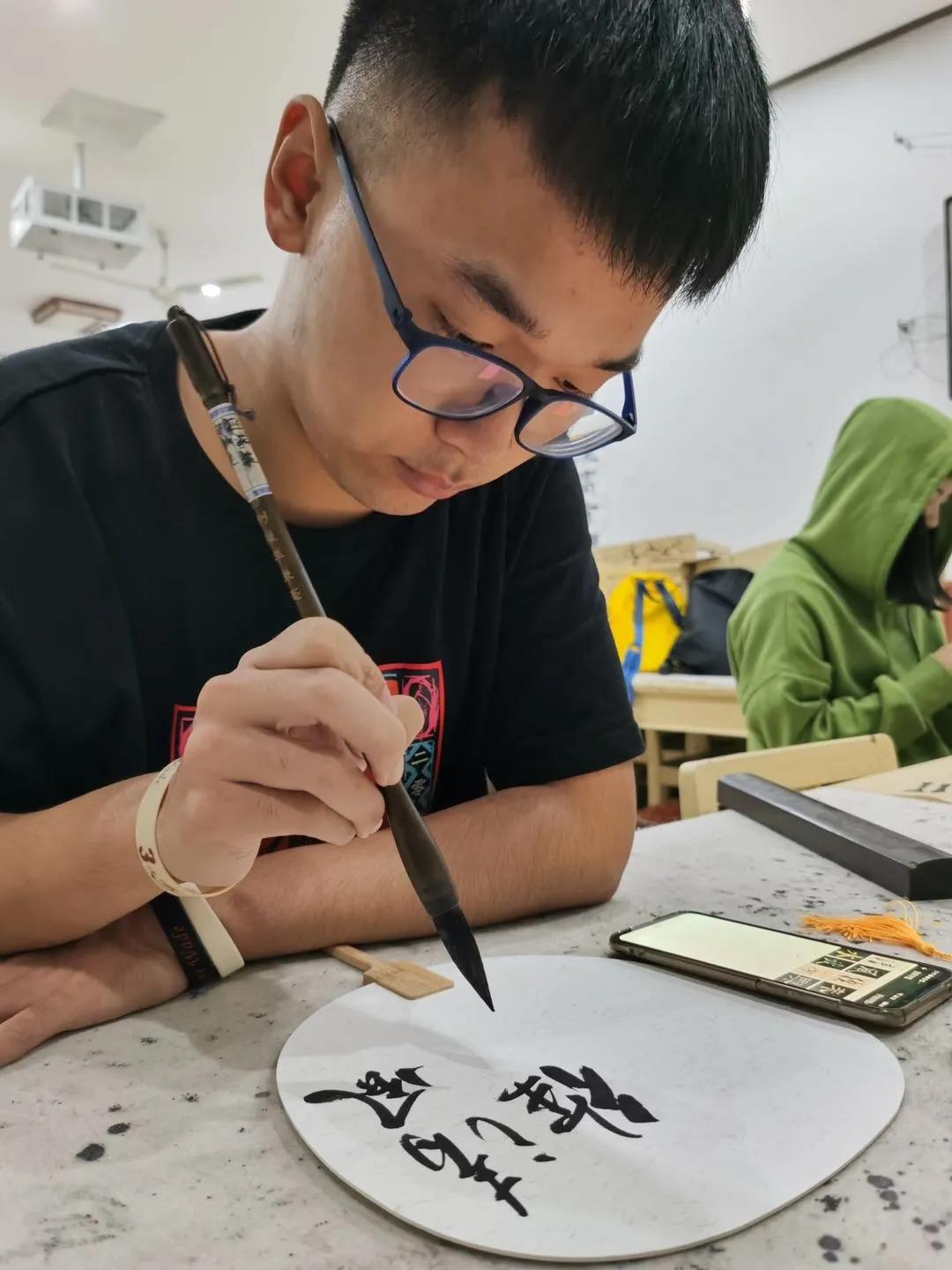 我部社员与书法社社长交流学习,大家一起讨论关于墨香书社的发展以及学员的学习情况,让我们一起期待墨香书社的下一个高光时刻吧!