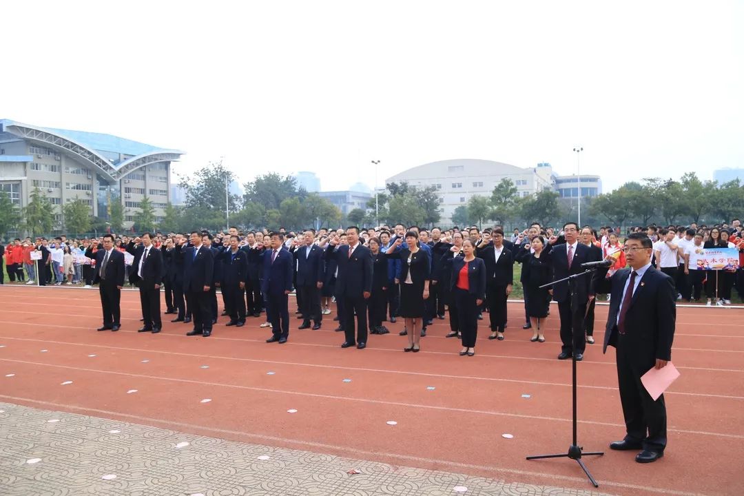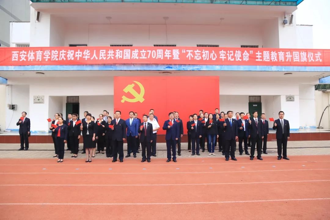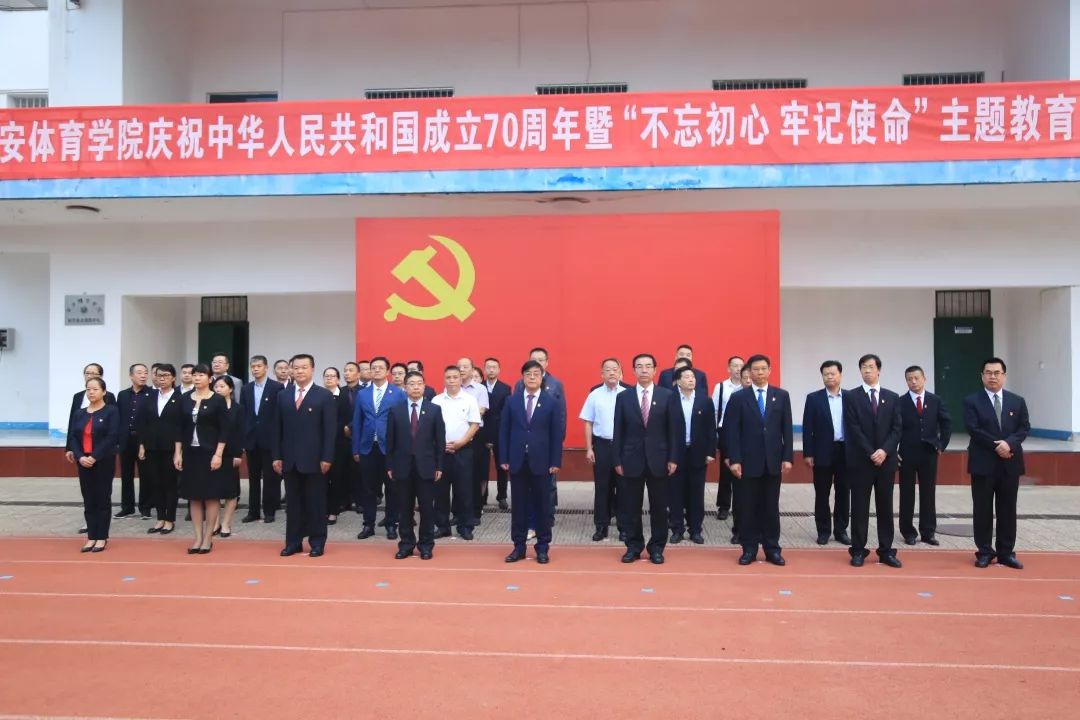 为庆祝中华人民共和国成立70周年,深入开展“不忘初心、牢记使命”主题教育,歌唱新时代奋斗主旋律,弘扬师生的爱国精神,我校于2019年10月1日早7:00在第一田径场举行庆祝中华人民共和国成立70周年暨“不忘初心、牢记使命”主题教育升旗仪式。今年会官方网站校领导、各二级党委书记、校团委全体成员、学工部、各单位主要负责人、全体辅导员、二级学院教师代表、学生代表、近两年发展的70名党员参加了升旗仪式,升旗仪式由校长朱元利主持。