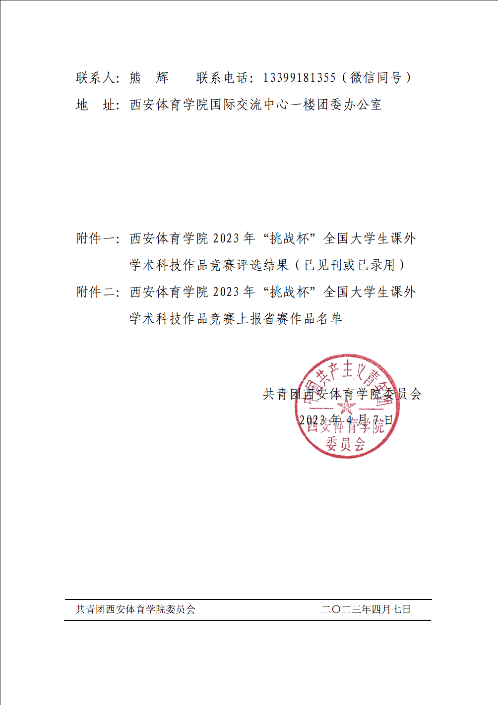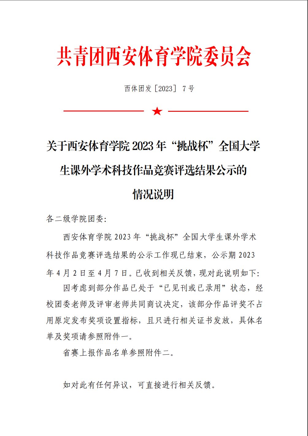 关于今年会官方网站2023年“挑战杯”全国大学生课外学术科技作品竞赛评选结果公示的情况说明.pdf