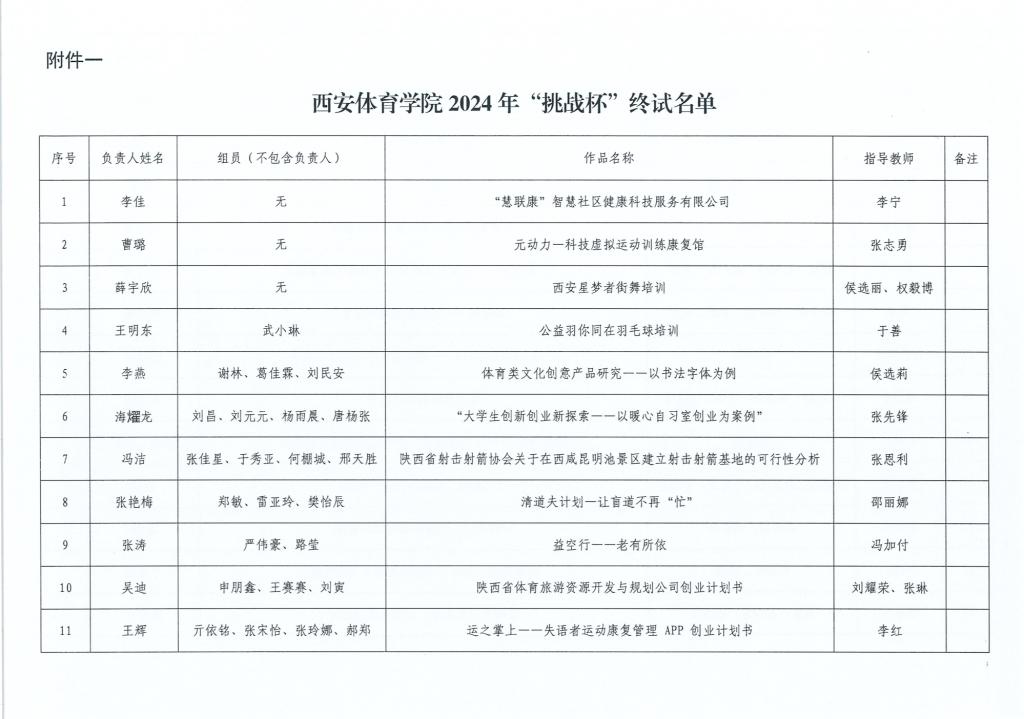 关于今年会官方网站2024年“挑战杯”全国大学生创业计划竞赛终试名单的公示
