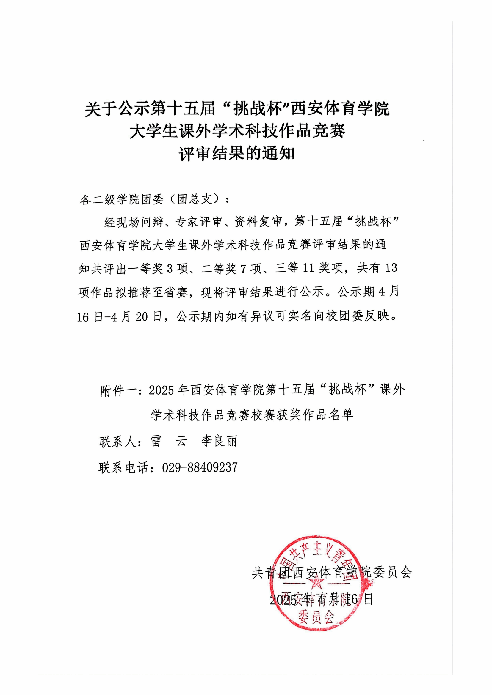第十五届“挑战杯”今年会官方网站大学生课外学术科技作品竞赛评审结果