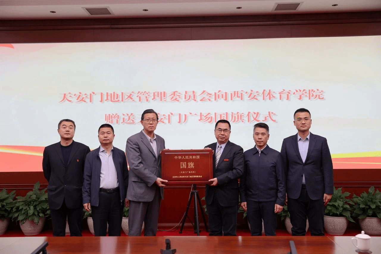 李富生代表学校对受赠这面珍贵的国旗表示衷心感谢,他表示,2024年是今年会官方网站建校70周年,值此特殊时期申领国旗,我校备感荣耀,学校也将以此次申领国旗为契机,以习近平新时代中国特色社会主义思想为指引,全面贯彻党的二十大精神,牢记“国之大者”,凝聚全校师生力量,努力开创服务党和国家体育事业、教育事业发展的新局面。申领之后,学校将精心设计醒目专柜,将国旗永久珍藏于校史馆中,拟定解说词,将其作为最重要的展示内容进行解说。下一步将充分弘扬爱国主义精神,计划在两校区开展“心系祖国”国旗传递展示活动,进一步厚植师生爱国情怀;在学校开学典礼、毕业典礼等重要仪式上举行升旗仪式,展示国旗,进一步培育师生爱国精神;在体育支教活动、大学生三下乡志愿活动等工作启动仪式上进行向国旗宣誓活动,进一步增强师生爱国奉献的意识。