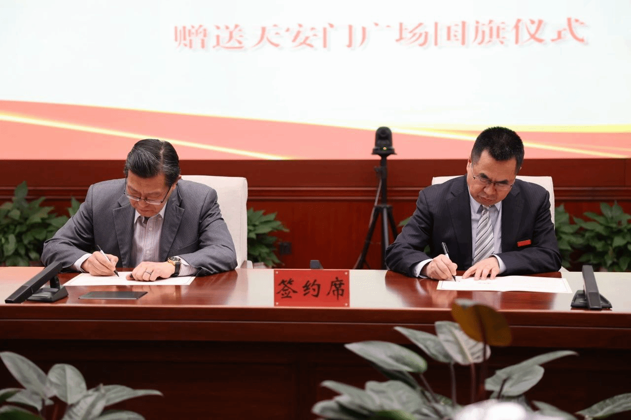12月13日下午,北京市天安门地区管理委员会向我校赠送国旗仪式在天安门地区管理委员会会议室举行。天安门地区管委会党组成员、副主任姚辉向学校赠送国旗,我校校长李富生代表学校迎请国旗,双方签订使用协议。我校获赠的是9月21日在天安门广场升起的国旗。在建校70周年之际获赠校庆日当天的国旗,对我校意义重大,将在学校校史馆永久珍藏。