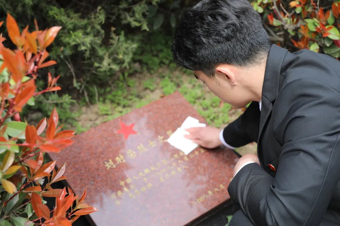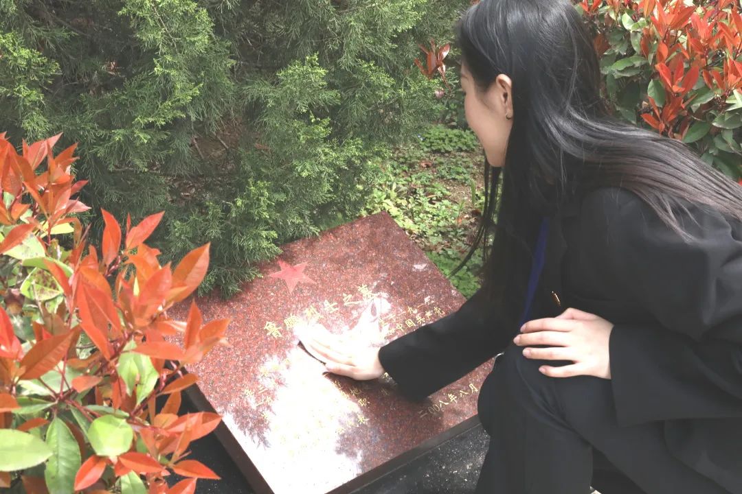 同学们完成擦拭墓碑的代祭扫服务。