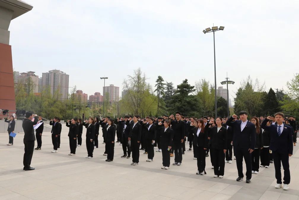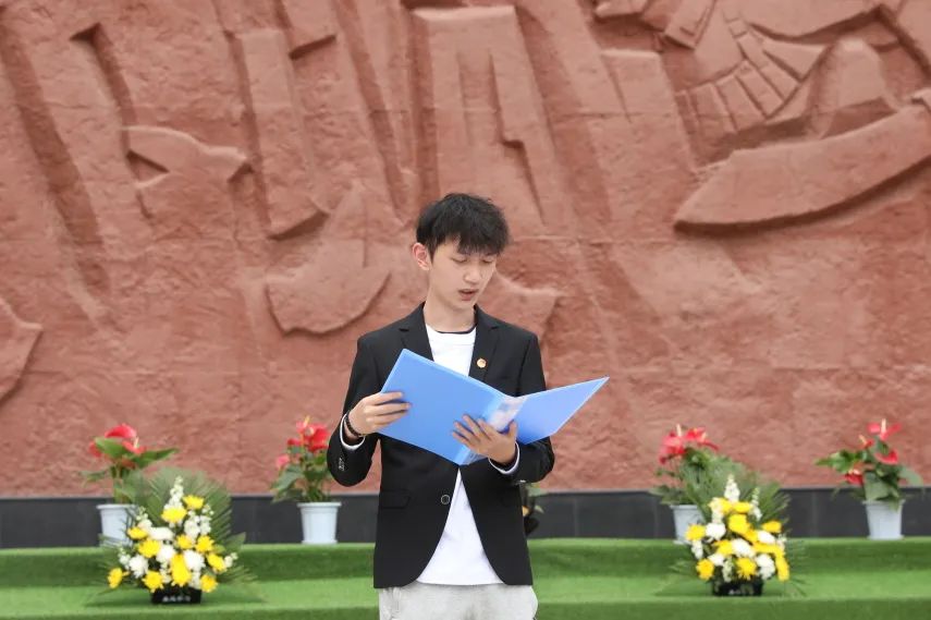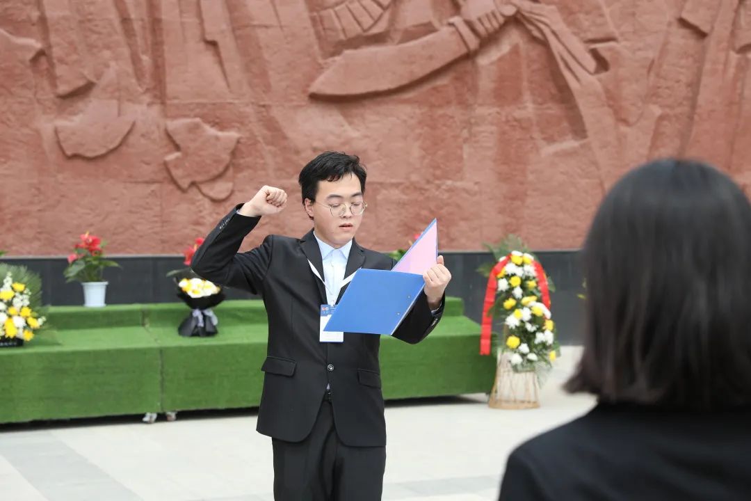 由校团委学生会工作部主任袁浩带领全体同学重温入团誓词,同学们庄重而坚定的声音,昭示着传承革命精神的决心。