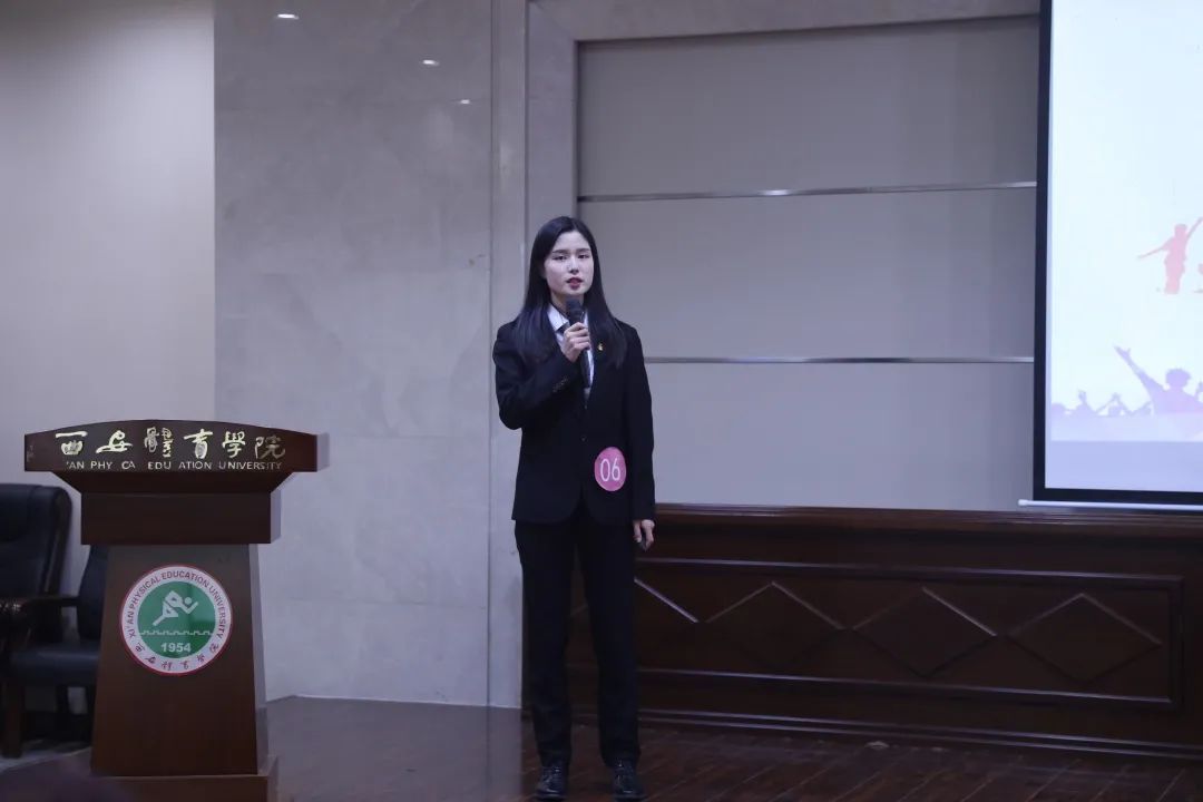 为提升我校团干部的政治素质、担当意识、业务水平和素质能力,以更好履行共青团引领凝聚青年、组织动员青年、联系服务青年的职责,提升共青团组织的组织力、引领力、服务力,12月4日下午14:30,今年会官方网站第一届团干部素质能力大赛决赛在2号行政楼6楼会议室举行。莅临本次大赛的各位领导及评审嘉宾有党委宣传部部长张朝阳、马克思主义学院院长秋实、教务处副处长任超学、学工部副部长樊敏、运动训练学院党委书记王鑫、武术学院党委书记朱舰、艺术学院党委书记丁雪艳、体育新闻与传媒学院党委书记杨亚玲、体育经济与管理学院党委书记马迅、足球学院党委书记姜梅、校团委老师、各二级学院团委书记以及学生团干部代表。