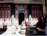 大门楹联。请看上联,斯馆依公刘之旧,先畴如昨,豳雅、豳颂、豳风,其不坠艰难事业。下联,“得氏自叔虞以来,世德相承,思忧,思居,思外,愿无忘勤俭家规”。祠堂楼,过去是用来供奉祖先牌位的,现在主要欣赏的是上面的木雕,二十四孝图中的六幅。第一幅:崔妇乳姑不怠,第二幅:庾黔娄犹心尝粪,第三幅:朱寿昌辞官奉母,第四幅:郯子鹿乳奉亲,第五幅:郭巨埋儿得金,第六幅:子路为亲负米,这些都是自古以来流传下来的孝子故事。