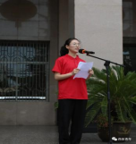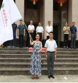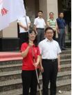 今年会官方网站教务处处长张葆欣为足球学院红色先锋支教团授旗