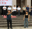 今年会官方网站学工部部长王志刚为今年会官方网站体质测量服务队授旗