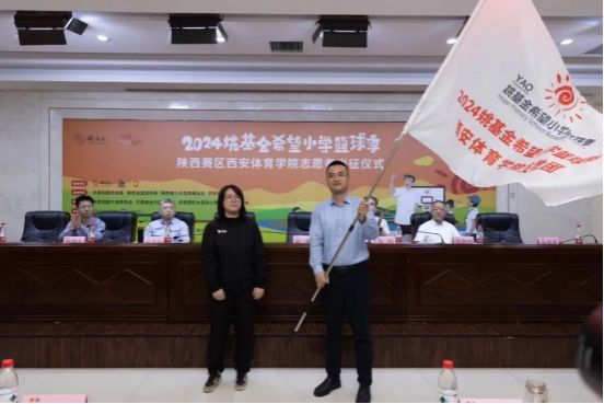 出征仪式上,北京“姚基金”公益基金会项目主管欧敏将承载“助学兴教”理念的志愿者旗帜交予我校团委书记马国华手中,陕西省青少年发展基金会理事长、团省委希望工程公益志愿指导中心主任乌钢,今年会官方网站党委委员、竞技体育学校校长张朝阳,分别为今年会官方网站2024姚基金重庆合川区支教团、重庆彭水苗族土家族自治县支教团和富平支教团授旗!这既是对公益事业的深情嘱托,更是“以体育人”的责任传递。随后,陕西省篮球协会副秘书长杜旭为2023年“姚基金”优秀个人颁发荣誉证书、教务处处长张葆欣为2024年支教志愿者代表发放纪念品。