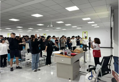 随后各个组别的志愿者用模拟假人展示急救流程,志愿者们听得十分认真并在现场进行了练习。本次活动从理论讲授到实际操作展示,再到模拟演练,每一个环节都经过精心设计,既符合科学性又注重实用性,目的是使志愿者们学习急救技能,提高个人的自救与互救能力。