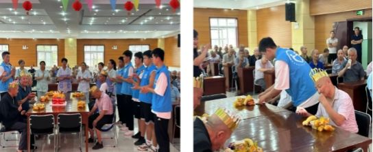 活动开始,志愿者们第一时间为那些在中秋佳节之际迎来寿辰的老人们精心准备了一场特别的生日礼物。他们为寿星们精心准备了蛋糕,围站在他们的身旁齐唱生日歌,用歌声为过生日的老人们送上了最诚挚的祝福。香甜的生日蛋糕,温暖的烛光,温馨的歌声,让老人们感受到了来自社会的关爱和尊重。一位“寿星”老人感动地说:“孩子们,谢谢你们在这个特别的日子为我准备的生日惊喜,这是我度过的最特别、最温暖的生日。”