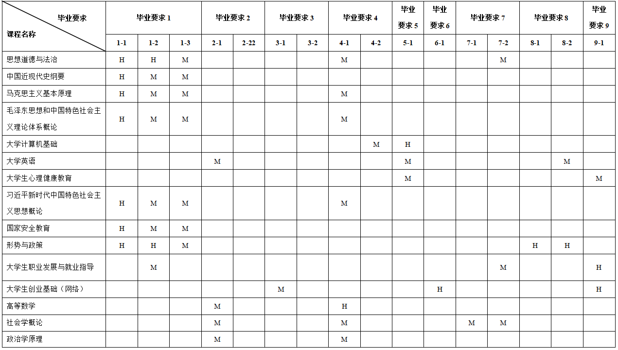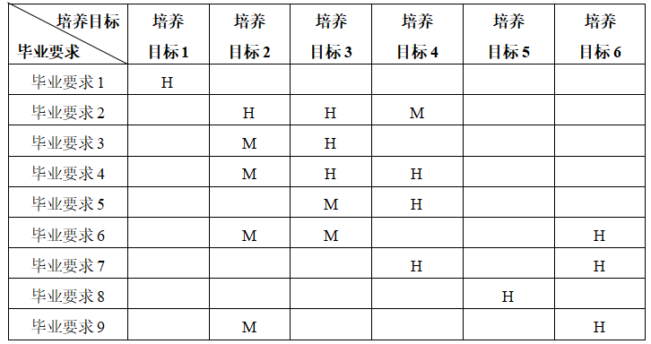3.2.毕业要求对培养目标的支撑矩阵 (表1)