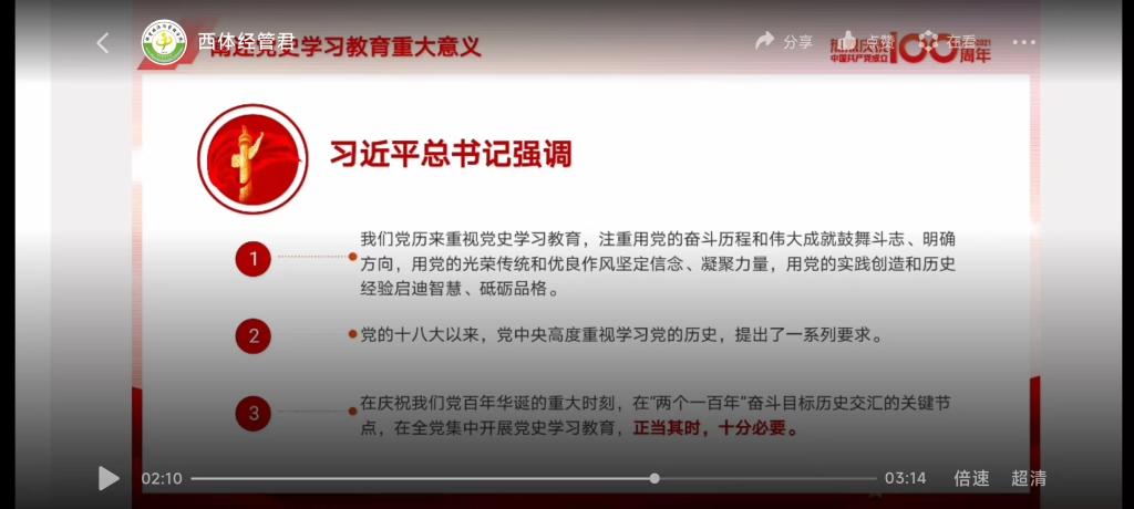 总结:我们应学习好、传承好、发扬好党史的深落实好党史学习教育。