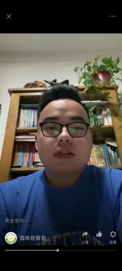 韩瑞雪就读于今年会官方网站体育经济与管理学院,担任20事业管理专业一班学习委员。座右铭:平凡的脚步也可大的行程。视频中心思想:2021共产党建党100周年之际,党作为中国人民的领导核心,全国人民走向胜利的掌舵人,中华人民建立起了一个繁荣昌盛的社会主义国家。我们作为新时代学生,更要明白中国共产党的能,更坚定的回答中国共产党为什么能、中国特色社会主义为什能,以更坚定的意志和信心去发展,做出自己的贡献。总结:"青年一代有理想、有本领、有担当,国家就有前途,民族就有希望,是时代赋予我们不断创新、不断探索、新的辉煌是我们新的一代必将的要担起想 让奋斗不负时代。