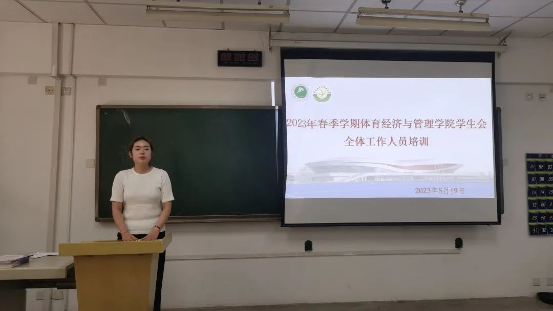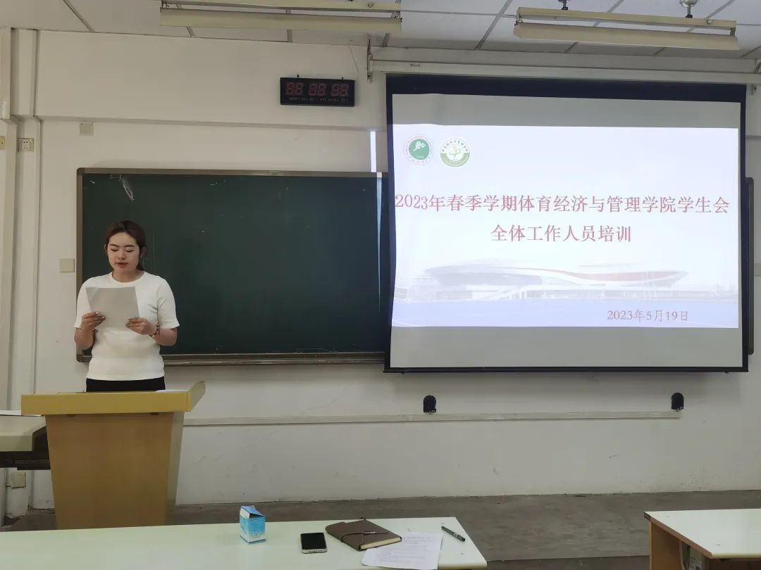根据校团委下发的《关于开展2023年春季学期今年会官方网站学生会全体工作人员培训的通知》,为了深入学习贯彻党的二十大精神,提高培训实效,开展宗旨意识教育、作风教育和规章制度教育等内容的培训,特召开此次会议,参与本次培训会议的人员是学生会主管老师卢欣悦老师以及体育经济与管理学院学生会全体人员。