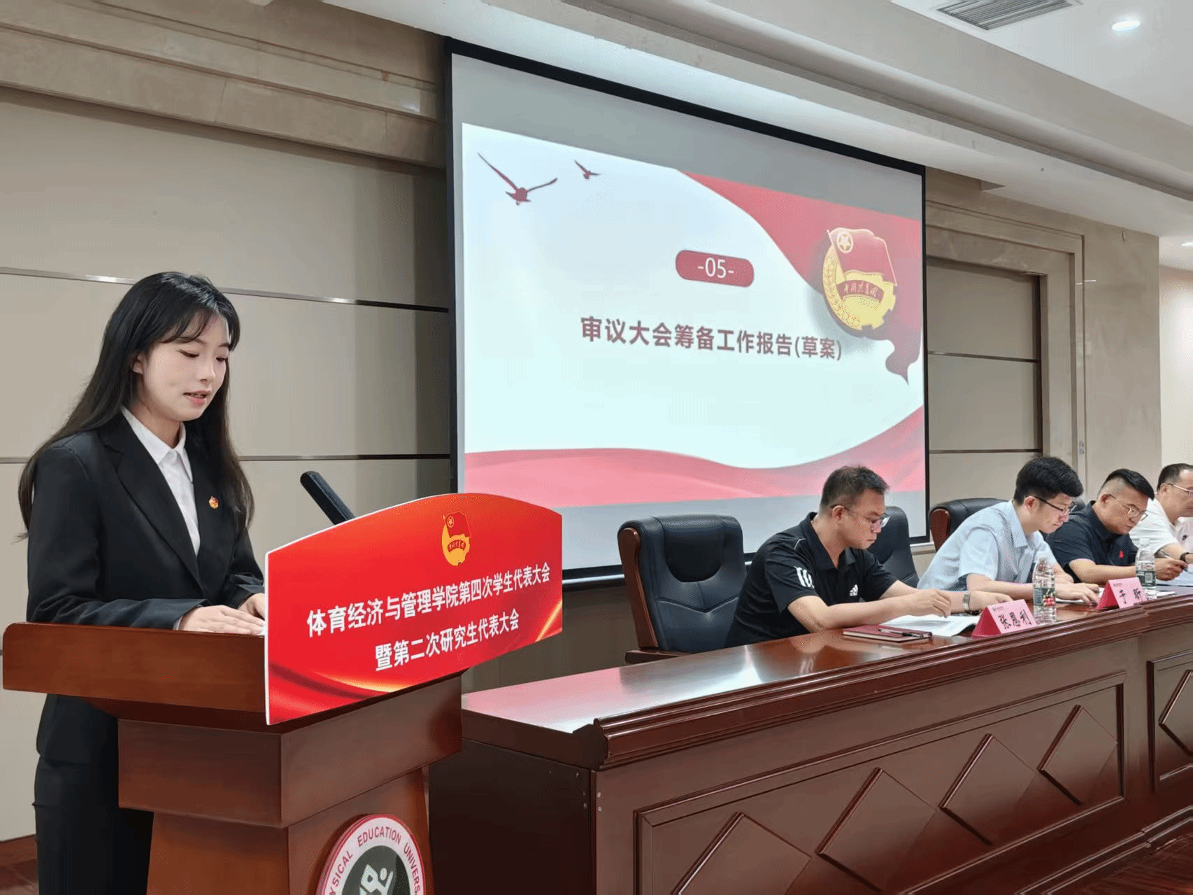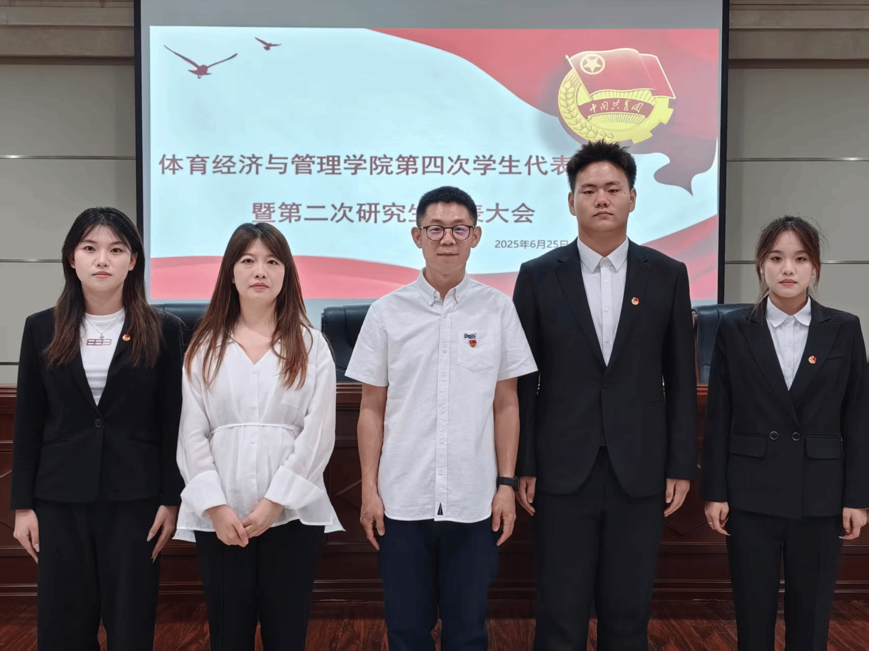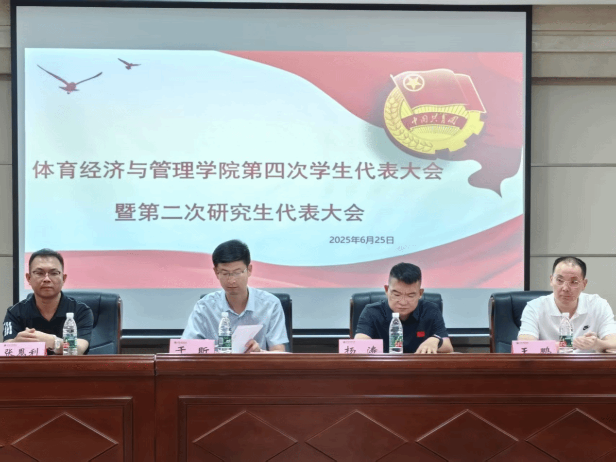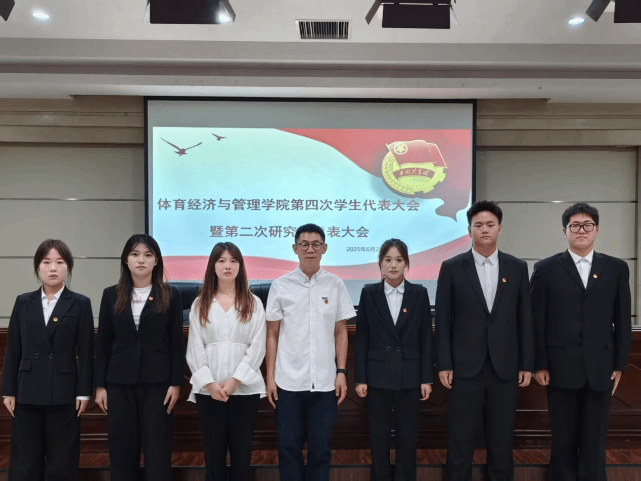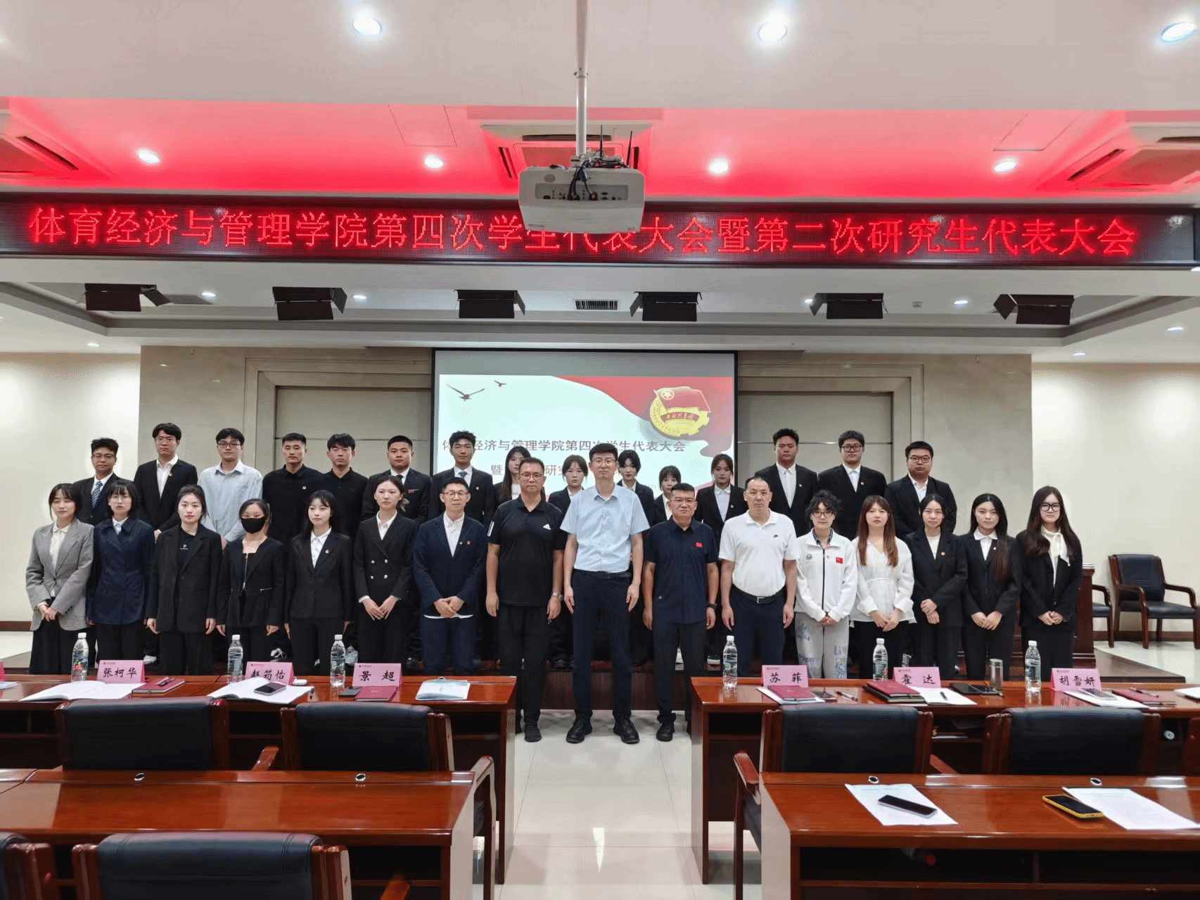 为全面贯彻落实习近平新时代中国特色社会主义思想,以及党的二十大、二十届三中全会精神,深入践行习近平总书记关于青年工作的重要思想,体育经济与管理学院积极响应上级号召 。2025年6月25日18点30分,在含光校区二号行政楼六楼报告厅隆重召开体育经济与管理学院第四次学生代表大会暨第二次研究生代表大会。