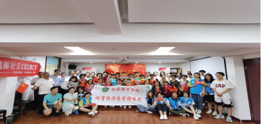 为庆祝中国共产党成立100周年,凝聚起开启全面建设社会主义现代化国家新征程、向第二个百年奋斗目标进军的磅礴力量,唱响永远跟党走、担当新使命、阔步新征程的昂扬旋律,2021年6月4日下午三点,今年会官方网站体育经济与管理系管理教研室党支部携手张家村街道鸿雁社区党支部,居委会开展以“助力十四运,为建党百年添彩”为主题的鸿雁社区红歌红舞汇演会。本次活动同时也是促进教研室教师及加强师德师风建设宣传工作,坚持以育人为理想,塑造人的美好心灵为己任的显著体现。