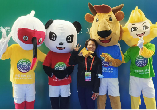 郭轶群老师在体操竞委会负责颁奖礼仪工作,为体操颁奖环节顺利进行贡献一份力量。