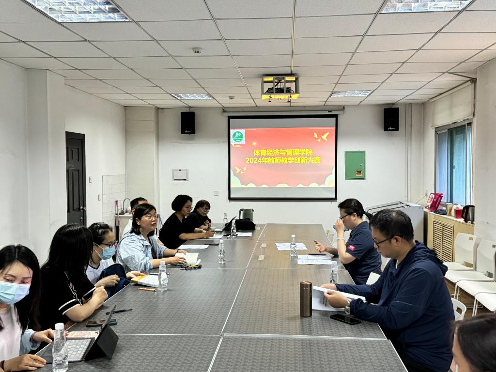 2024年6月6日下午,为激发学院教师们的教学热情,提升教学质量,推动教学改革与创新,营造良好的教学氛围,体育经济与管理学院在实验楼513会议室举办教师教学创新大赛。体育经济与管理学院院长王鹏、副院长丁建岚、张恩利及学院全体教师参与,学院副院长丁建岚主持大赛。