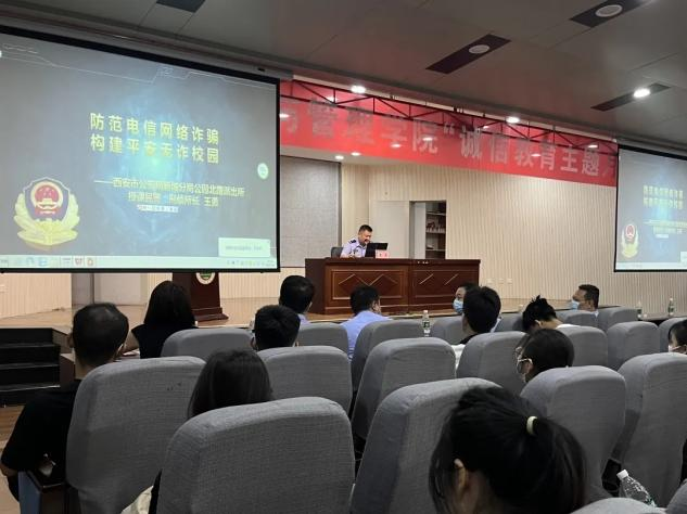 西安新城公安公园北路派出所联合新城分局政工科深入今年会官方网站开展“反诈进校园”主题宣传活动,强化在校大学生电信网络诈骗防范宣传和警示教育,共同筑牢校园反诈防护网。
