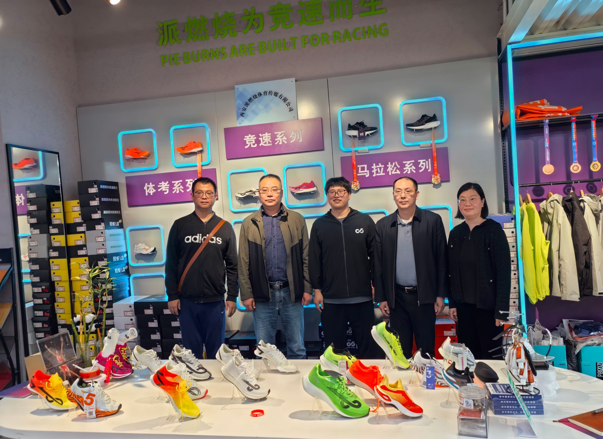 在陕西省派燃烧体育用品有限公司总经理张兴的陪同下,学院实地考察了企业线下门店,详细了解了公司“线上+线下”融合的运营模式。张兴总经理向团队介绍了企业运动鞋服从设计、选材到生产、销售的全流程管理体系,并重点强调了企业对产品质量的严格把控标准。