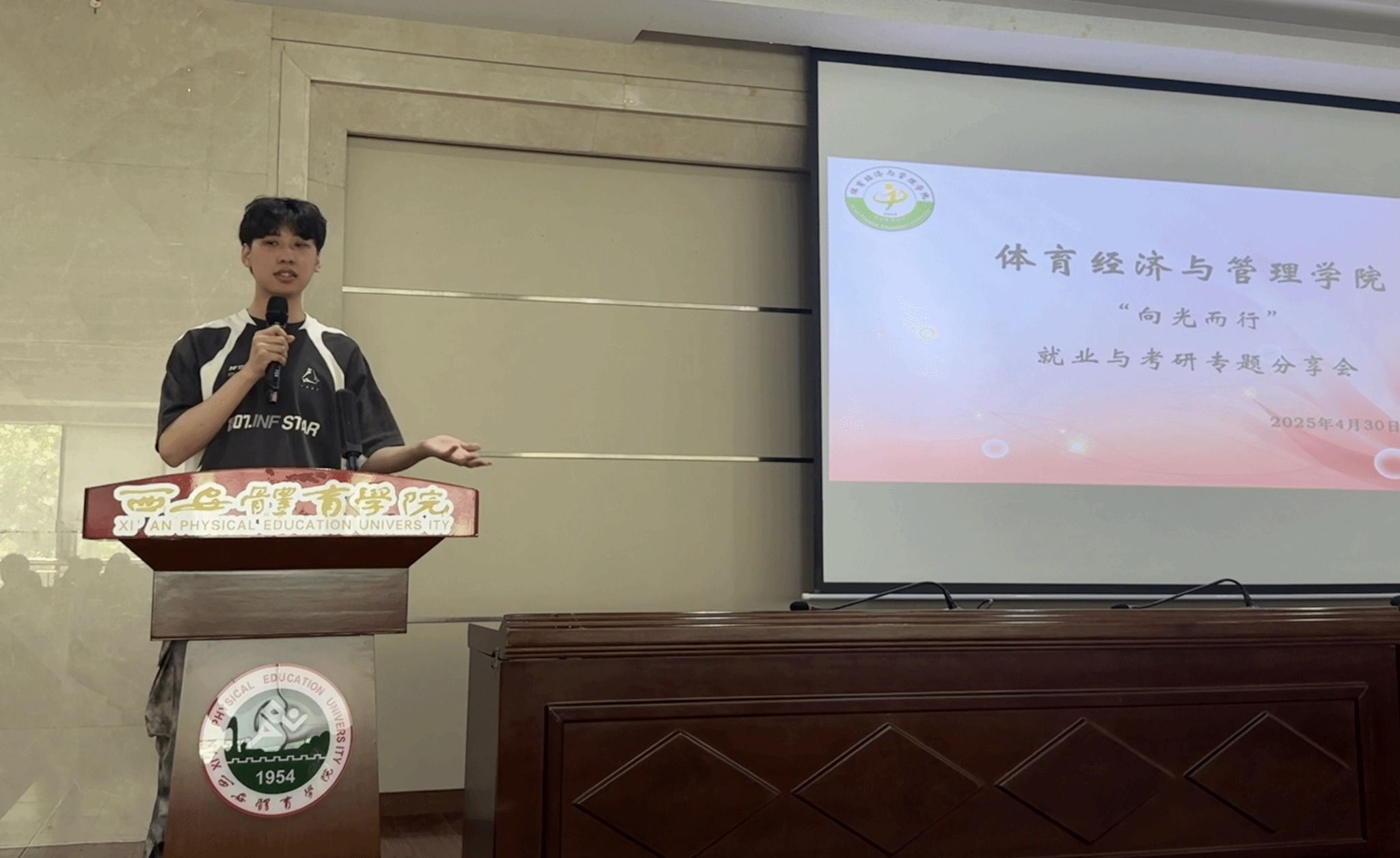 为助力2026届学生精准锚定职业发展方向,深化就业育人实效,全面提升毕业生就业竞争力,体育经济与管理学院于4月30日中午11:40,在2号行政楼6楼报告厅成功举办了“向光而行”就业与考研专题分享会。本次分享会体育经济与管理学院院长王鹏,党总支书记陈鑫,副院长张恩利、丁建岚,教师代表于美至,21级辅导员霍达,22级辅导员胡雪妍,2025届考研学生代表庞兴祺、颜靖人及2026届全体学生,共同探讨就业与考研之路。
