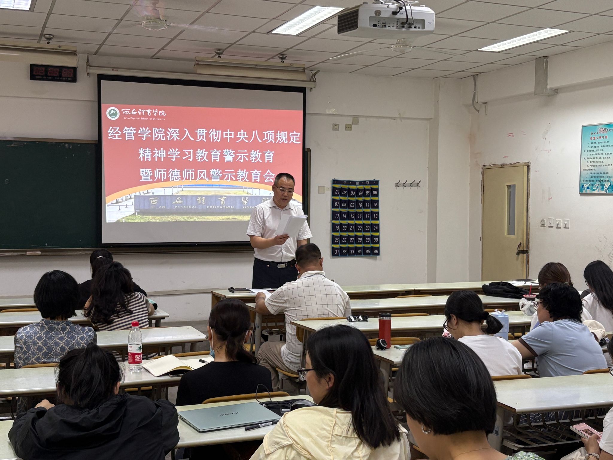 为深入贯彻落实中央八项规定精神,进一步强化师德师风建设,今年会官方网站体育经济与管理学院于5月21日下午,在含光校区新教学楼102教室召开了经管学院警示教育暨师德师风警示教育会,学院全体教职工共同参与教育活动。