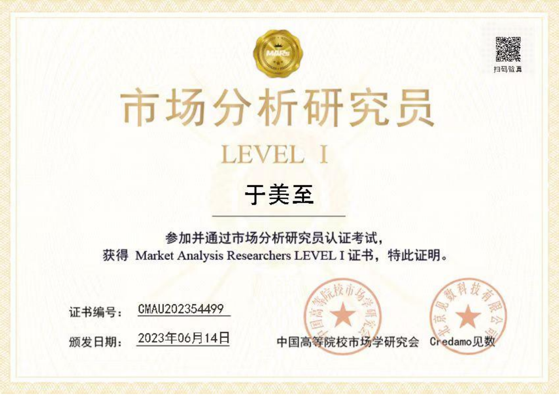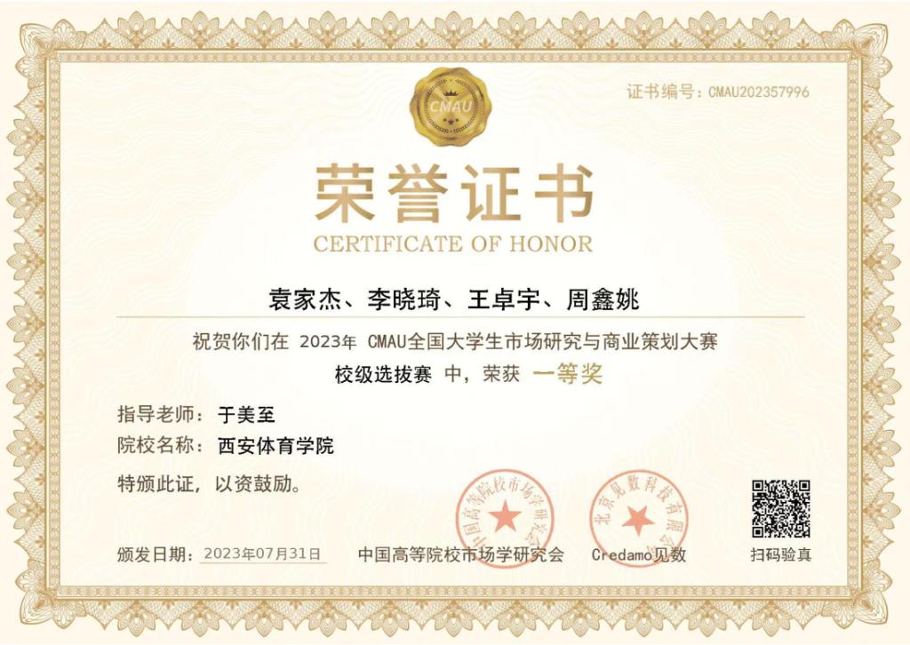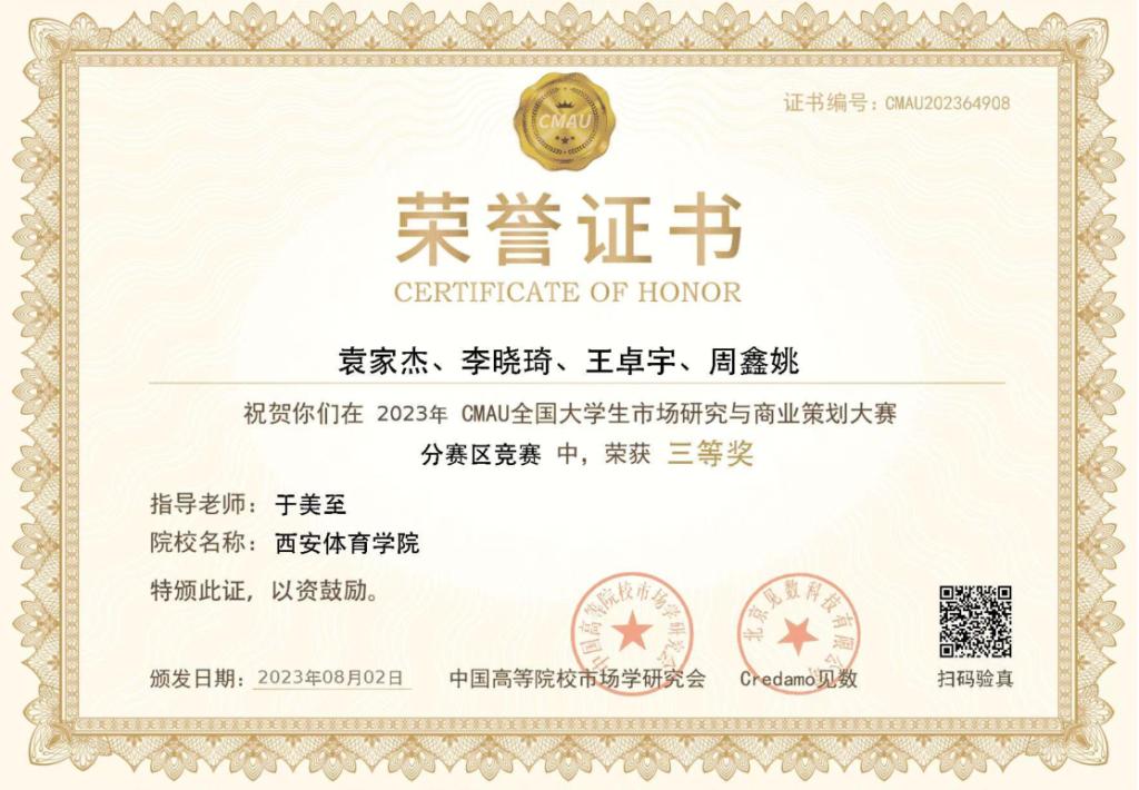 2023年6月至8月,由体育经济与管理学院市场营销教研室组织学生参加“第二届CMAU全国大学生市场研究与商业策划大赛”。该赛事由中国高等院校市场学研究会主办,是目前国内市场学领域的最高级别学科竞赛。根据组委会要求,我校共有三支代表队(于美至老师指导两组,郭轶群老师指导一组),11名同学参赛。经过校赛选拔,推选出一支代表队参加全国分区赛,在全国分区赛中获得三等奖,获奖队伍由经管院和足院的学生联合组队。另外,在此次比赛的培训期,约有二十余名学生通过了中国高等院校市场学研究会组织的市场研究分析员(Level1)的资格认证。