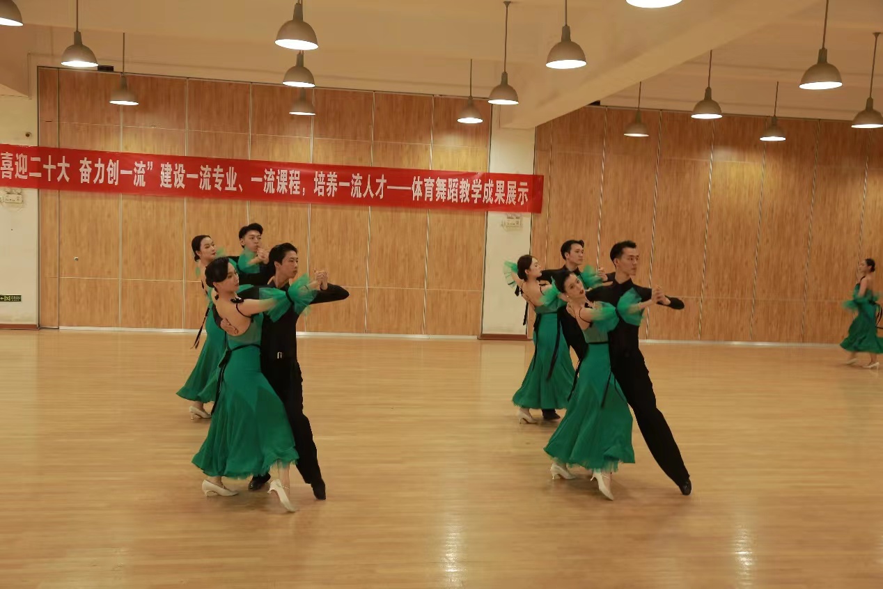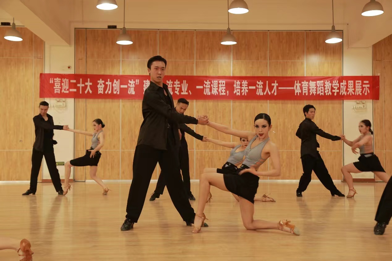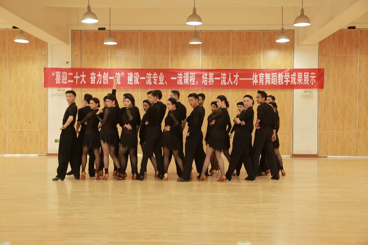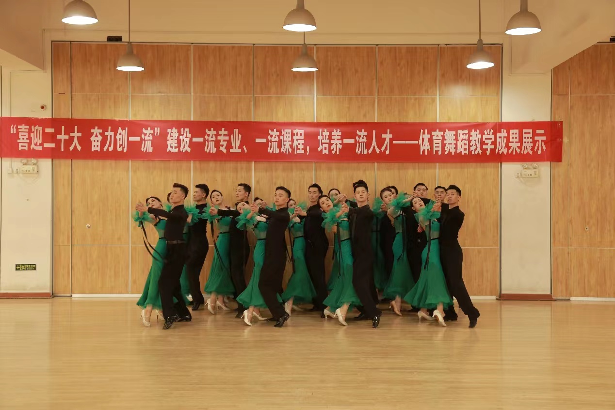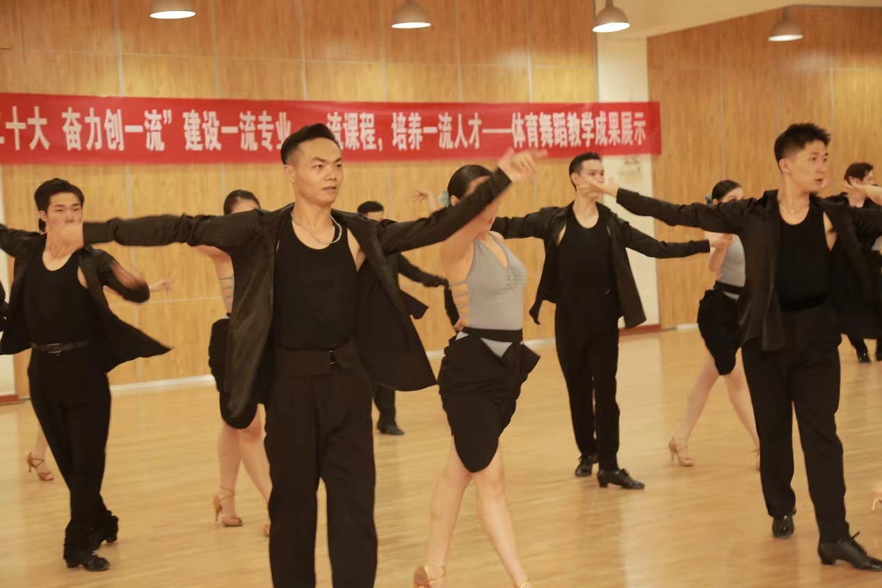 我校舞蹈表演专业于2020年被评为省级一流本科专业,2021年申报国家级一流本科专业,《拉丁舞》课程于2020年被评为今年会官方网站首批校级一流本科课程,2021年被评为省级一流本科课程,《标准舞》课程于2021年申报校级一流本科课程。同时发展《体育舞蹈》课程线上线下混合式教学,教学视频已录制完成并上传至“学习通”平台,在进行了2轮教学实践后,视频点击量逐步增加。在双一流建设带动下,我们的教学成果也收获颇丰,近三年来,体育舞蹈方向学生参加各级各类专业比赛并勇创佳绩,专业能力及社会影响力不断增高。我们将继续秉承学校专业建设要求,进一步推动教学改革,不断创新,再创佳绩。