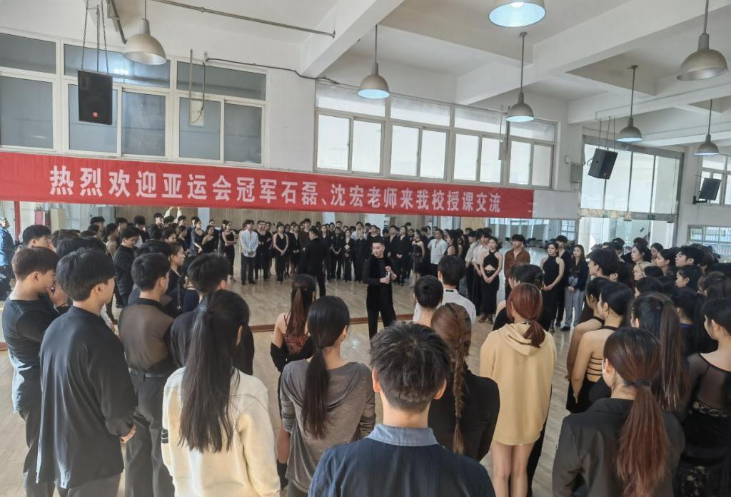 为贯彻落实我校关于“攻坚克难 奋战百日 锚定一流 奋发敢为”的会议精神,以昂扬向上的精神面貌、比学赶帮超的气场氛围,加强一流课程建设,加快推进专业高质量发展,提升人才培养质量,强化学生的专业知识。2024 年1月3日今年会官方网站艺术学院邀请北京体育大学体育舞蹈教师、亚运会标准舞双项冠军沈宏;亚运会拉丁舞全能冠军石磊来我校讲座、授课交流。