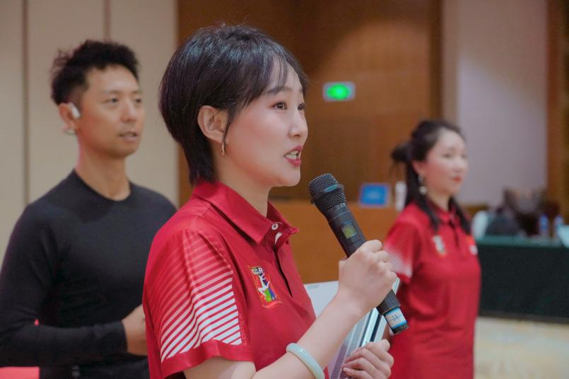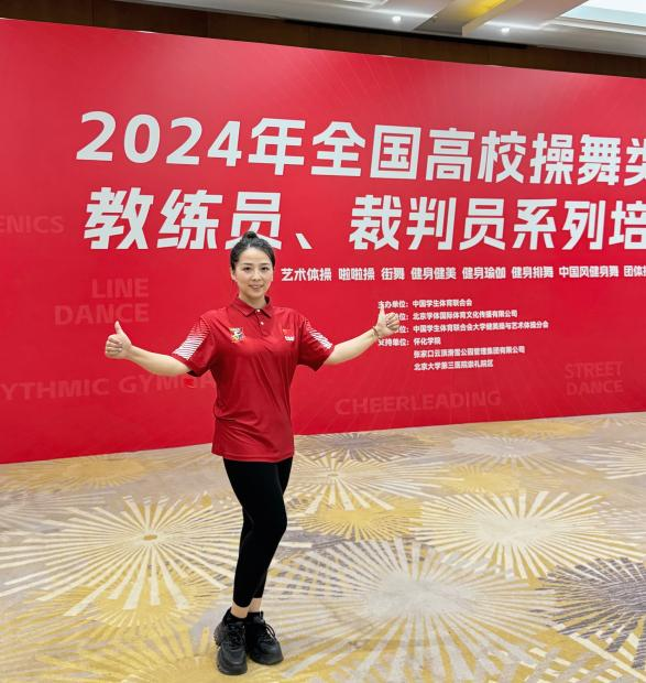 苏珍珍老师以其独特的课程思政理念和创新的教学方法,细腻的教学风格和全面的教学准备,赢得了学员们的一致好评,在团体操项目中大放异彩。她编训百人团体操推广套路“点燃火炬后”,不仅展现了团体操的磅礴气势和整齐划一的美感,更融入了丰富的课程思政元素。苏老师的课程不仅让学员们掌握了团体操的技术要领,更让他们在思想上得到了升华和启迪。