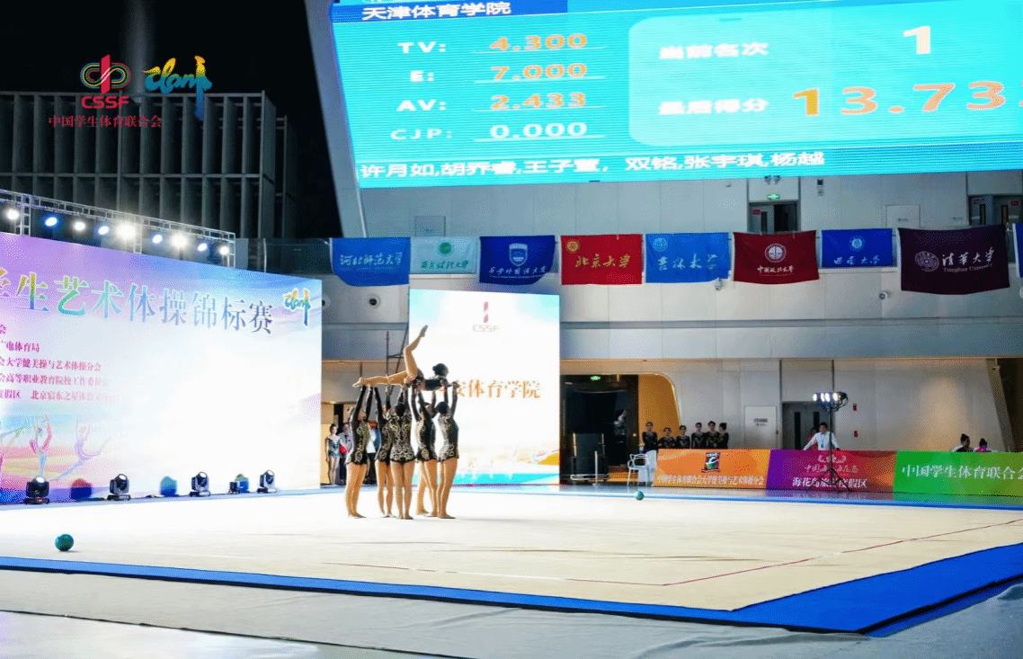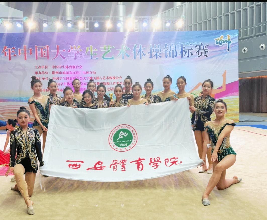 由艺术学院研究生和本科生共计16名学生组成代表队,在闫晓教授和陆渟老师精心指导带领下,代表我校参加锦标赛。经过激烈角逐,队员们顽强拼搏,斗志昂扬,凭借精湛的技术、默契的配合荣获艺术集体操、九级纱巾、九级球、团体总分四项冠军,荣获三球两绳、八级圈、集体全能三项亚军的优异成绩。