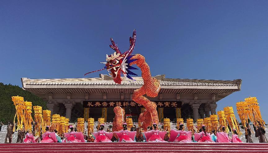 黄陵祭祖典礼以“弘扬中华优秀传统文化,贯通民族发展血脉,铸牢民族共同体,增进民族凝聚力,继往开来,勇毅前行,共同谱写了中华民族伟大复兴新篇章”。