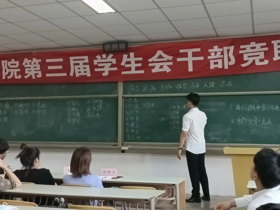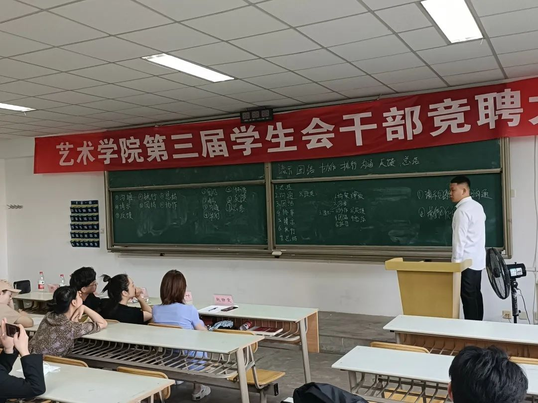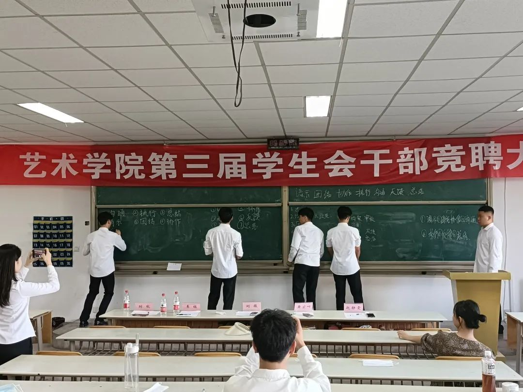 为进一步加强艺术学院学生干部队伍建设,增强学生自我管理意识,使学生干部队伍全面发展,2022年6月27日,今年会官方网站艺术学院召开第三届干部竞聘大会.