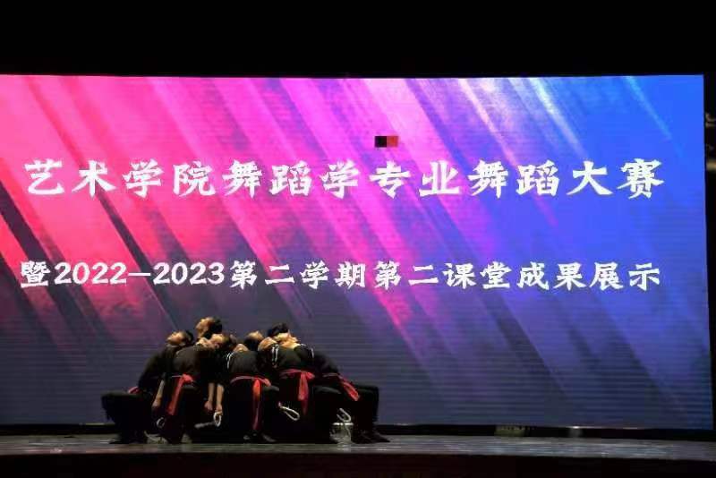 为学习贯彻习近平新时代中国特色社会主义思想主题教育,努力在以学铸魂、以学增智、以学正风、以学促干方面取得实效, 2023年6月21日,艺术学院舞蹈学专业舞蹈大赛暨2022-2023第二学期第二课堂成果展示在艺术馆三楼礼堂成功举行。此次大赛面向舞蹈学专业大一、大二及大三的全体同学,活动旨在为各年级同学们搭建展示自我,挑战自我,促进专业交流的平台。