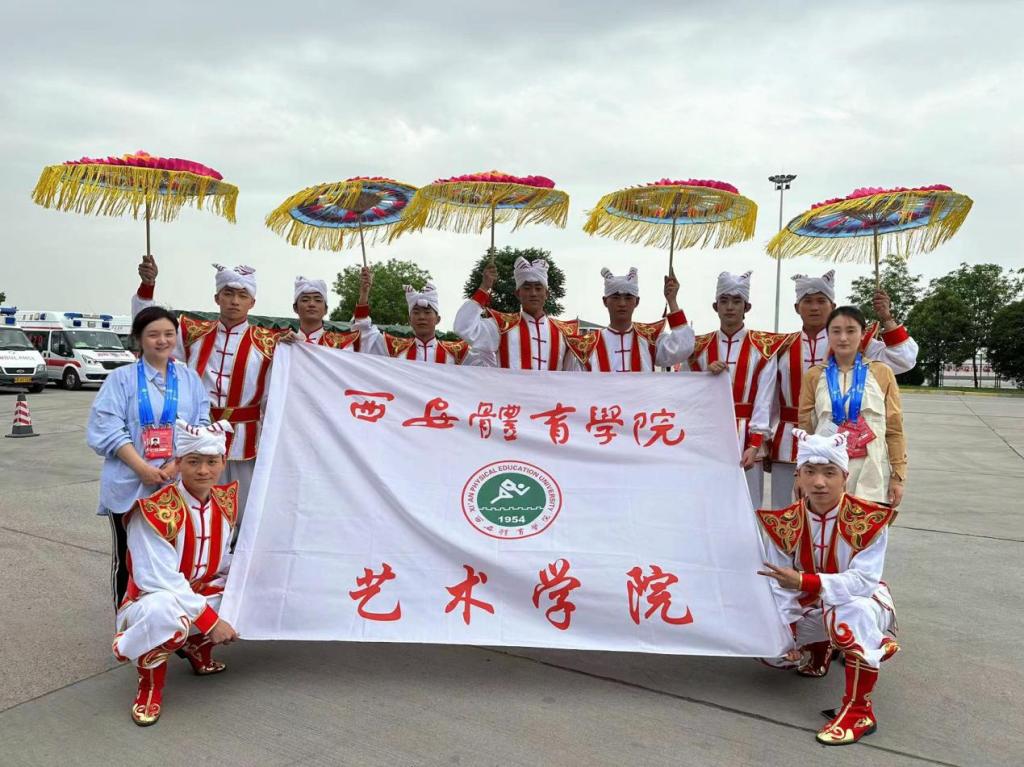 在接机仪式后,陕西省人民政府副秘书长贾锋、陕西省交通运输厅副厅长吴鹏翔,陕西省文旅局副厅长杜金根分别前来慰问我院参演学子。