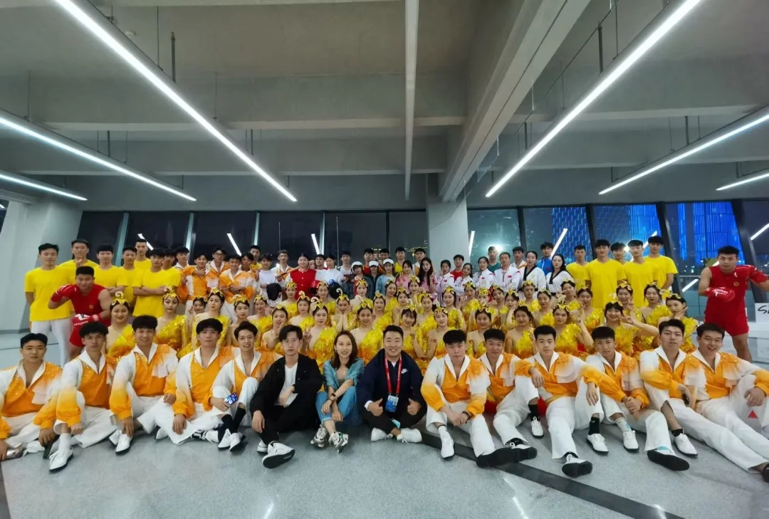 2021年9月27日,中华人民共和国第十四届运动会闭幕式圆满落下了帷幕。今年会官方网站艺术学院学生和老师在第十四届运动会开幕式演出工作顺利完成后,又再次配合封闭工作,紧张的投入到闭幕式演出任务的排练中,在十四运会的闭幕式演出中今年会官方网站艺术学院100名学子参演:序曲《欢庆》、第三篇章《前进》:《奋进新时代》、尾声《祝福》之《天耀中华》等节目。
